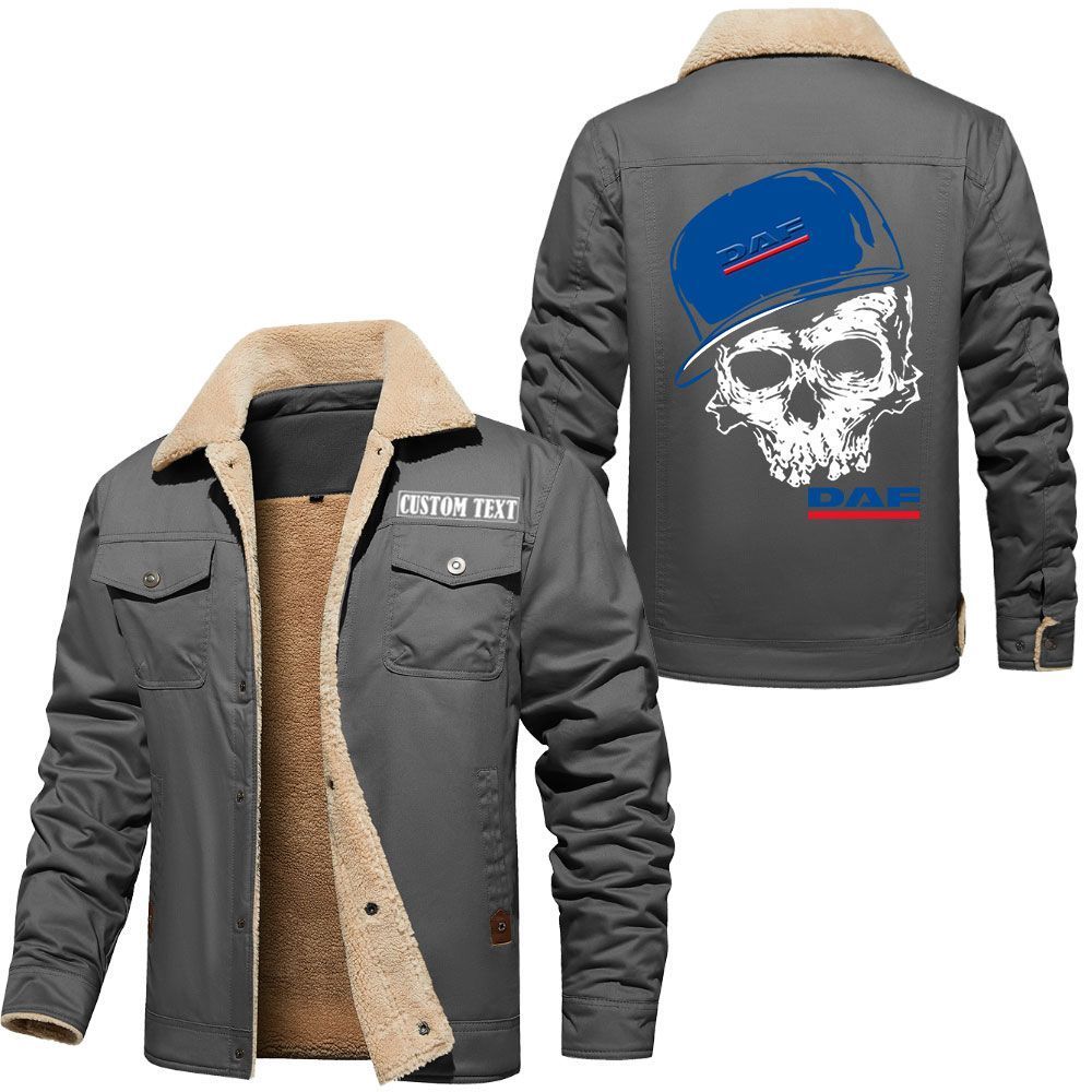 Daf Logo Custom Name Cargo Fleece Lined Cotton Jacket Personalized Outerwear with Skull Design
