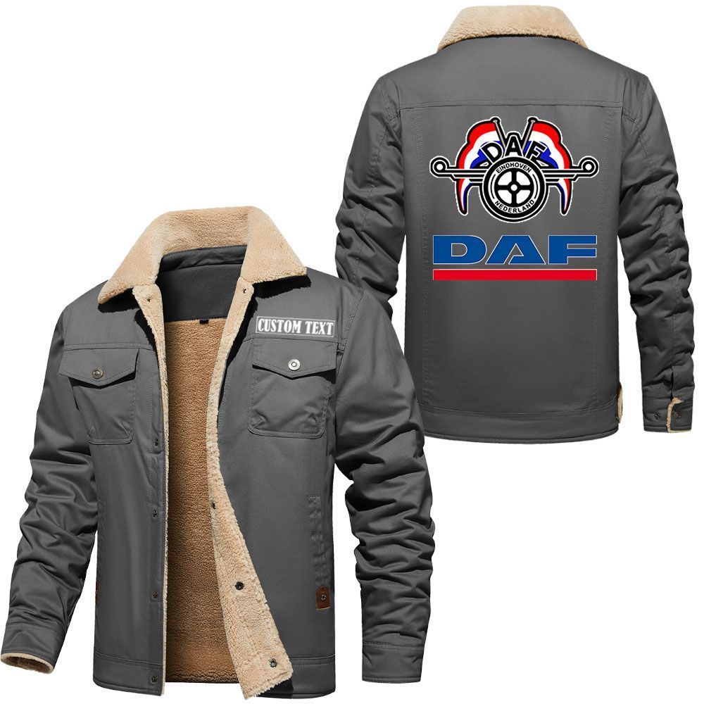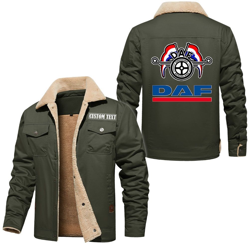 Daf Logo Custom Name Cargo Fleece Lined Cotton Jacket Stylish Warm Personalized Outerwear