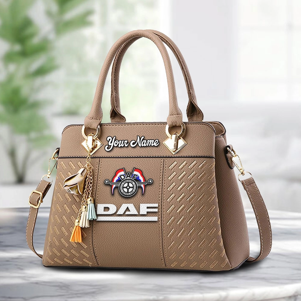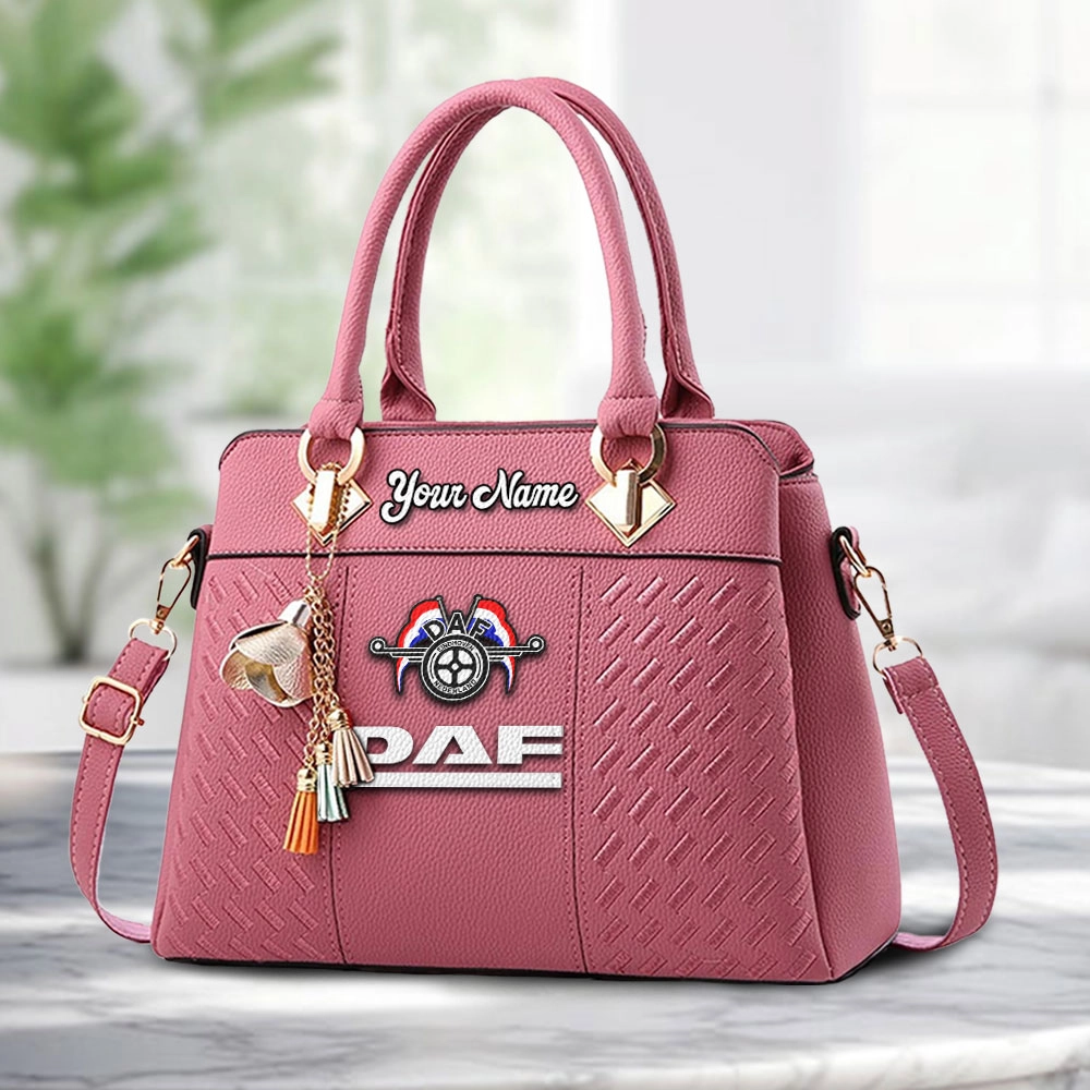 Daf Logo Personalized PU Leather Handbag Custom Name For Women