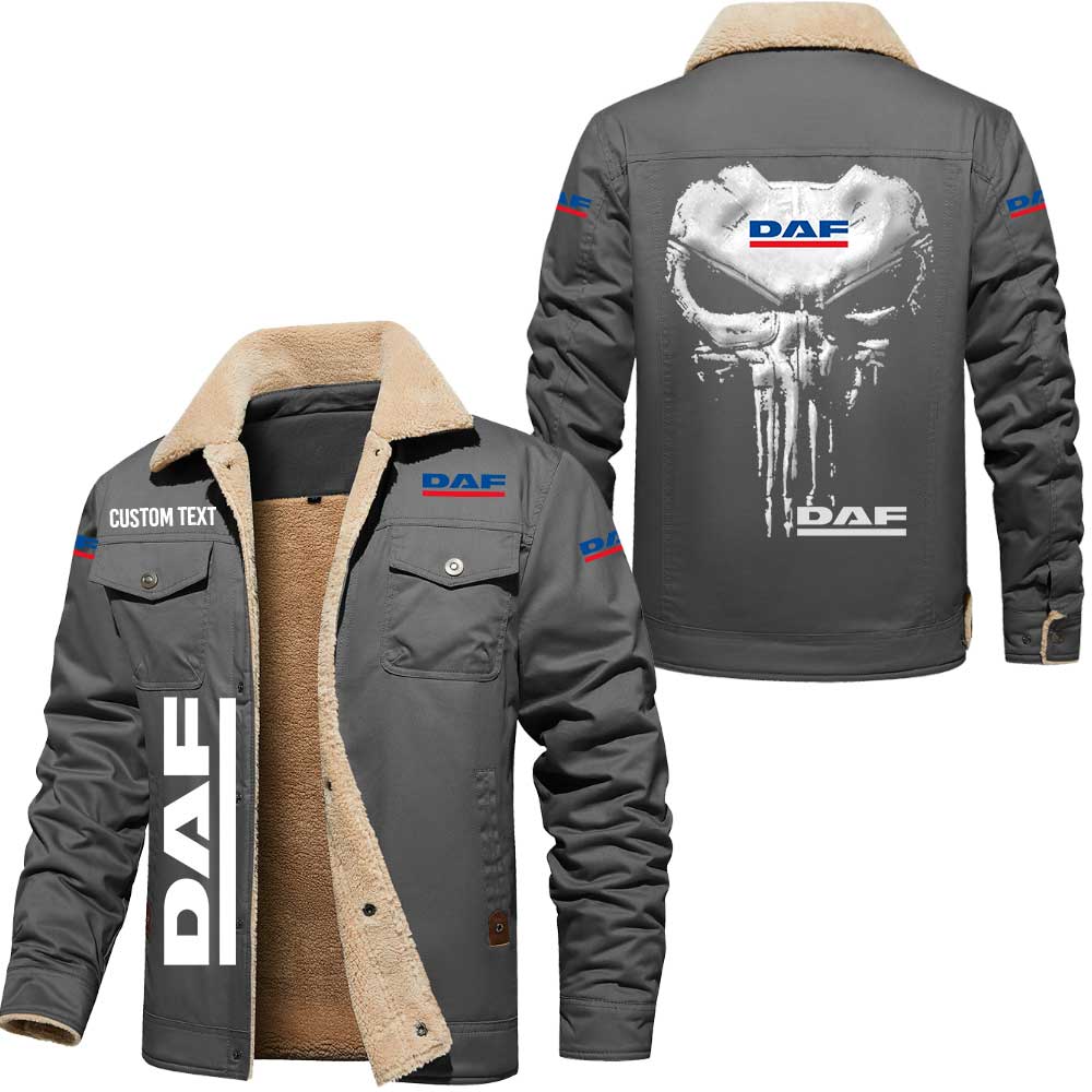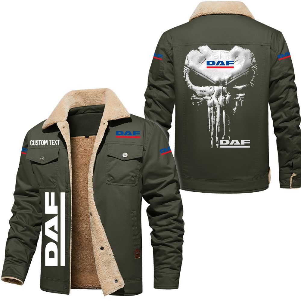 Daf Logo Skull Design Custom Text Cargo Fleece Lined Cotton Jacket