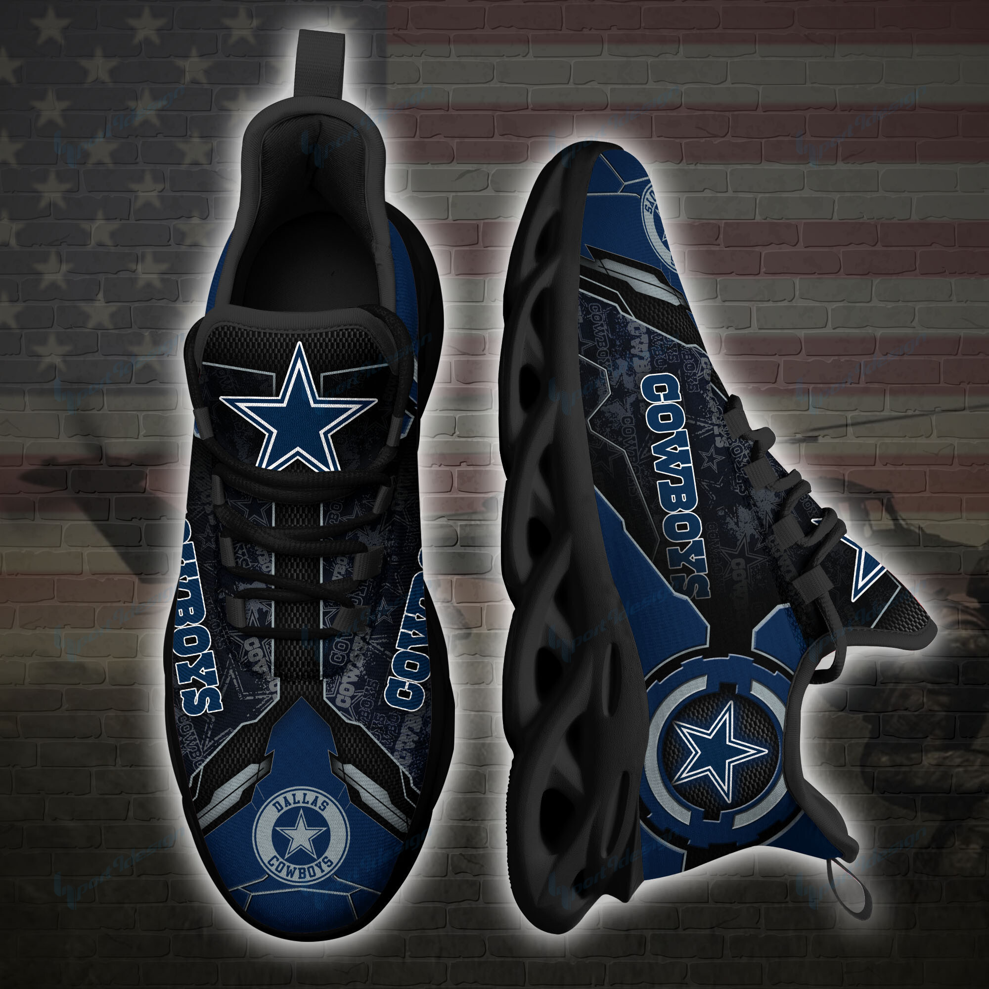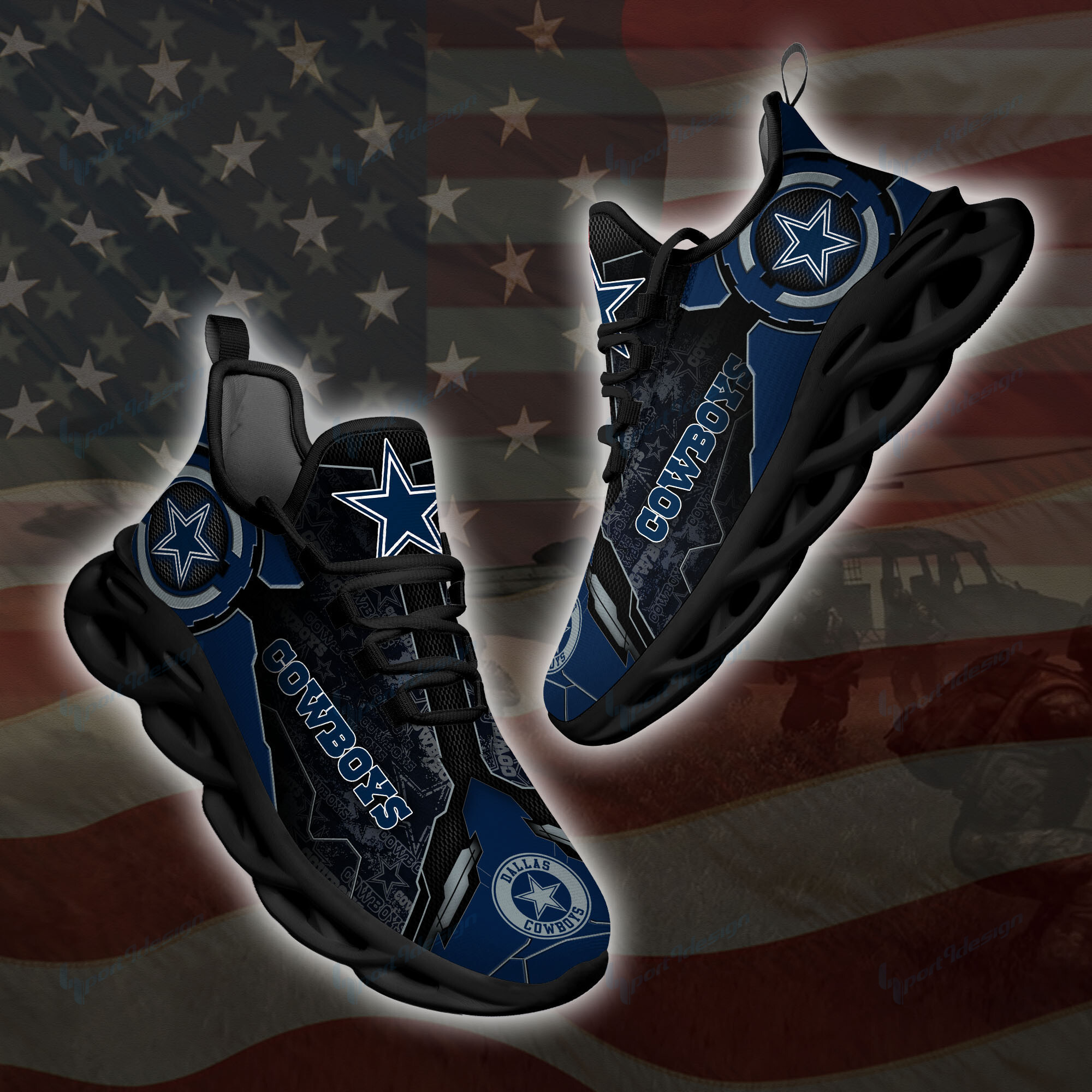 Dallas Cowboys NFL Max Soul Shoes Sneakers Printed White And Black Sole For Men And Women