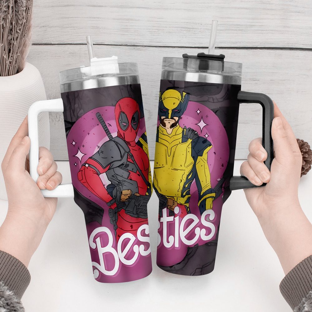 Deadpool Wolverine Movies Custom Stanley Quencher 40Oz Stainless Steel Tumbler With Handle