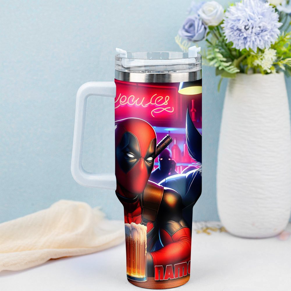 Deadpool Wolverine Movies Custom Stanley Quencher 40Oz Stainless Steel Tumbler With Handle