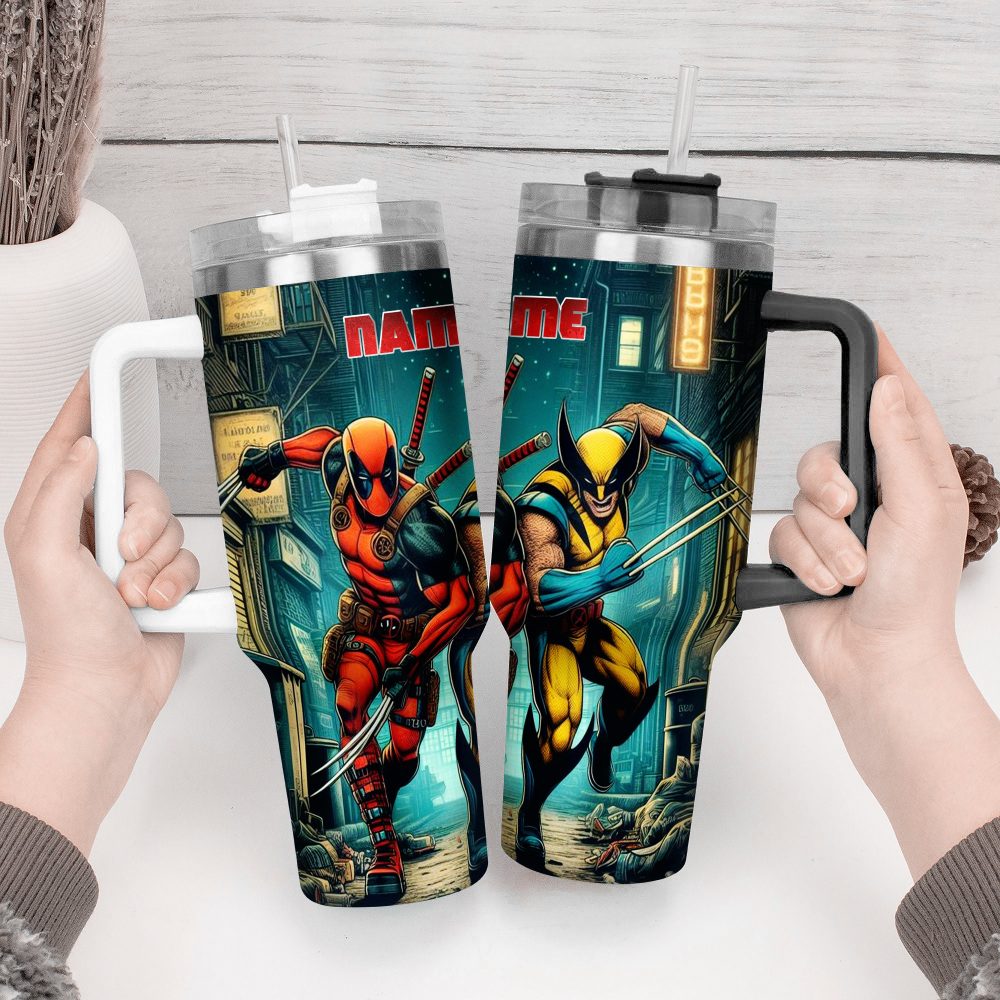 Deadpool Wolverine Movies Custom Stanley Quencher 40Oz Stainless Steel Tumbler With Handle