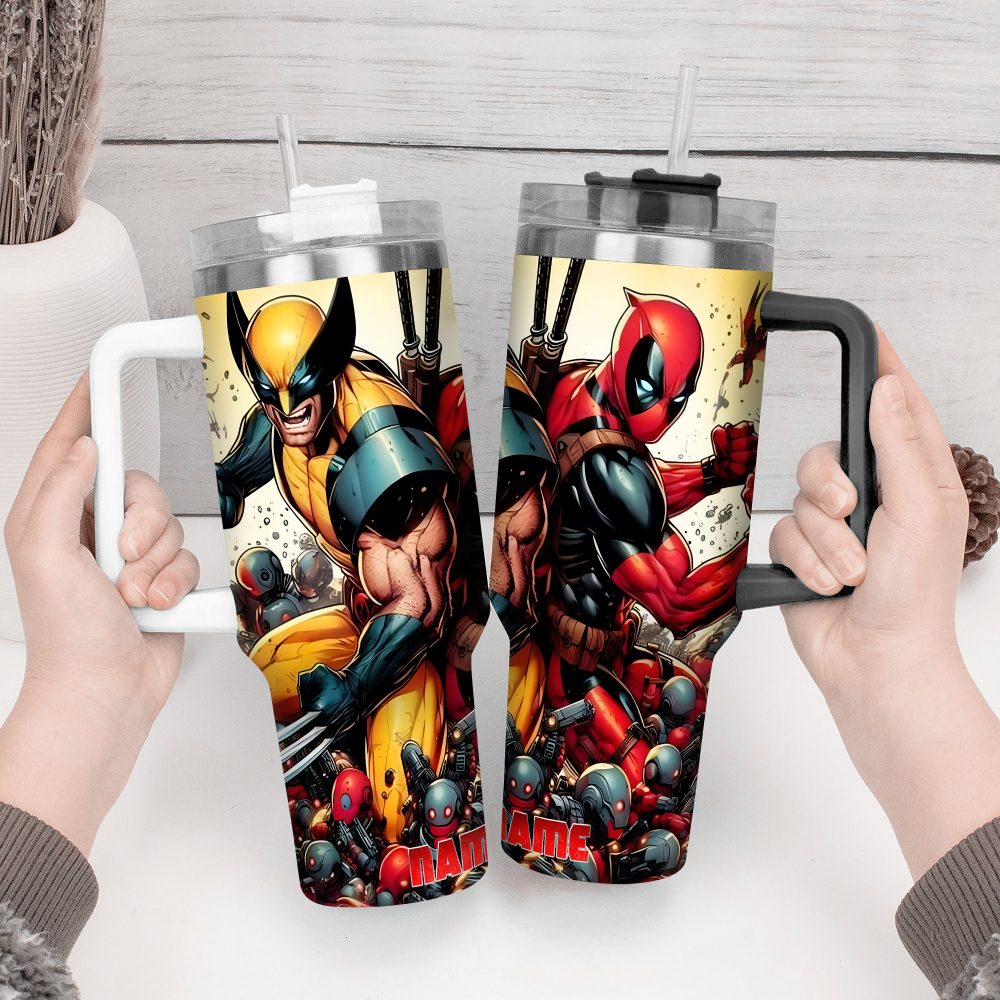 Deadpool Wolverine Movies Custom Stanley Quencher 40Oz Stainless Steel Tumbler With Handle