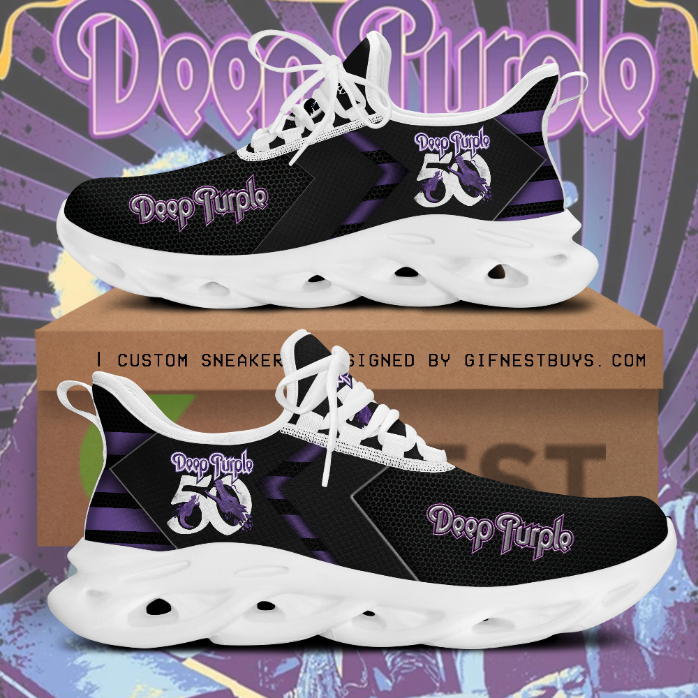 Deep Purple Max Soul Shoes Sneakers Printed White And Black Sole For Men And Women