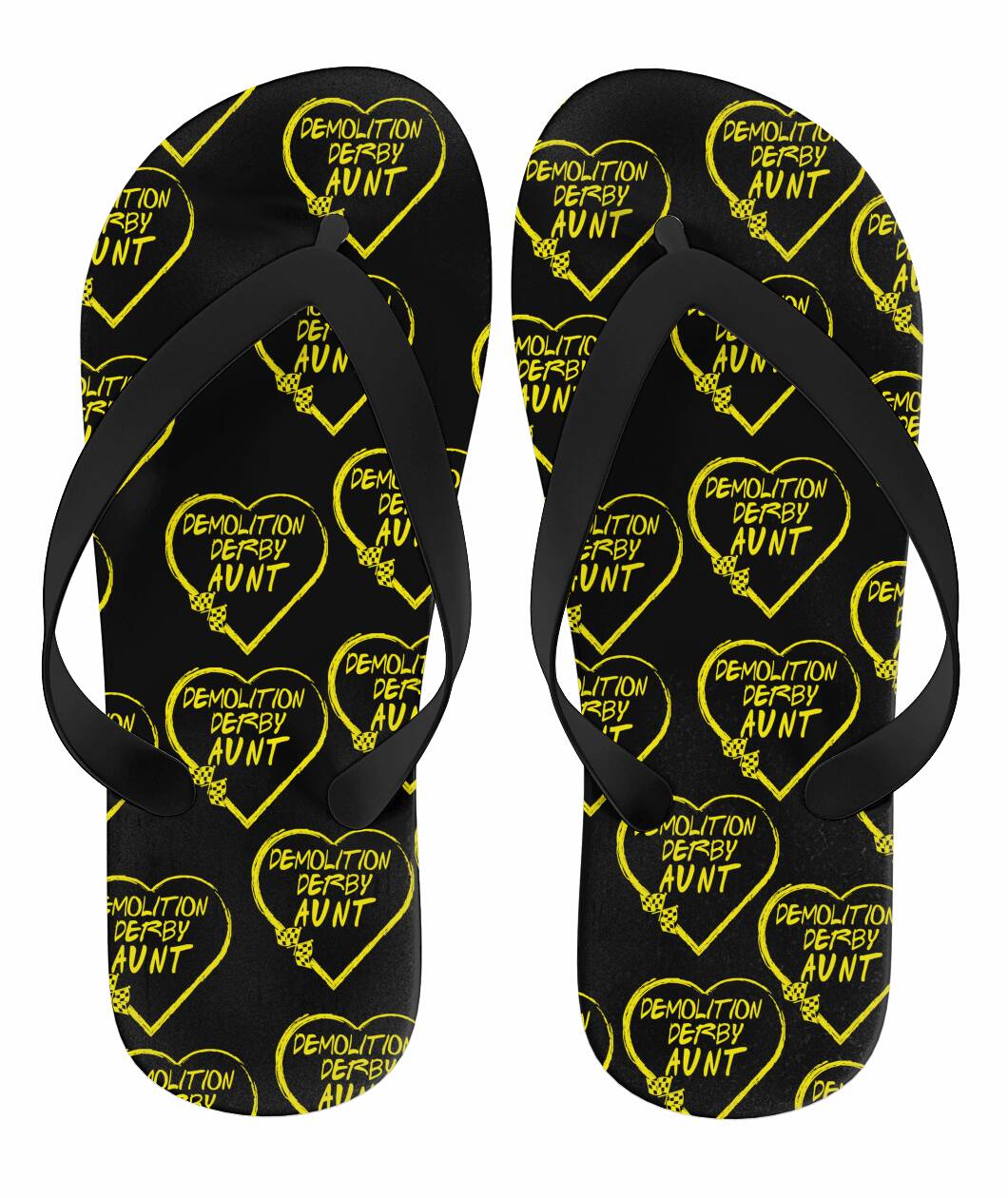 Demolition Derby Grandma Heart Flip Flops Black Strap Green