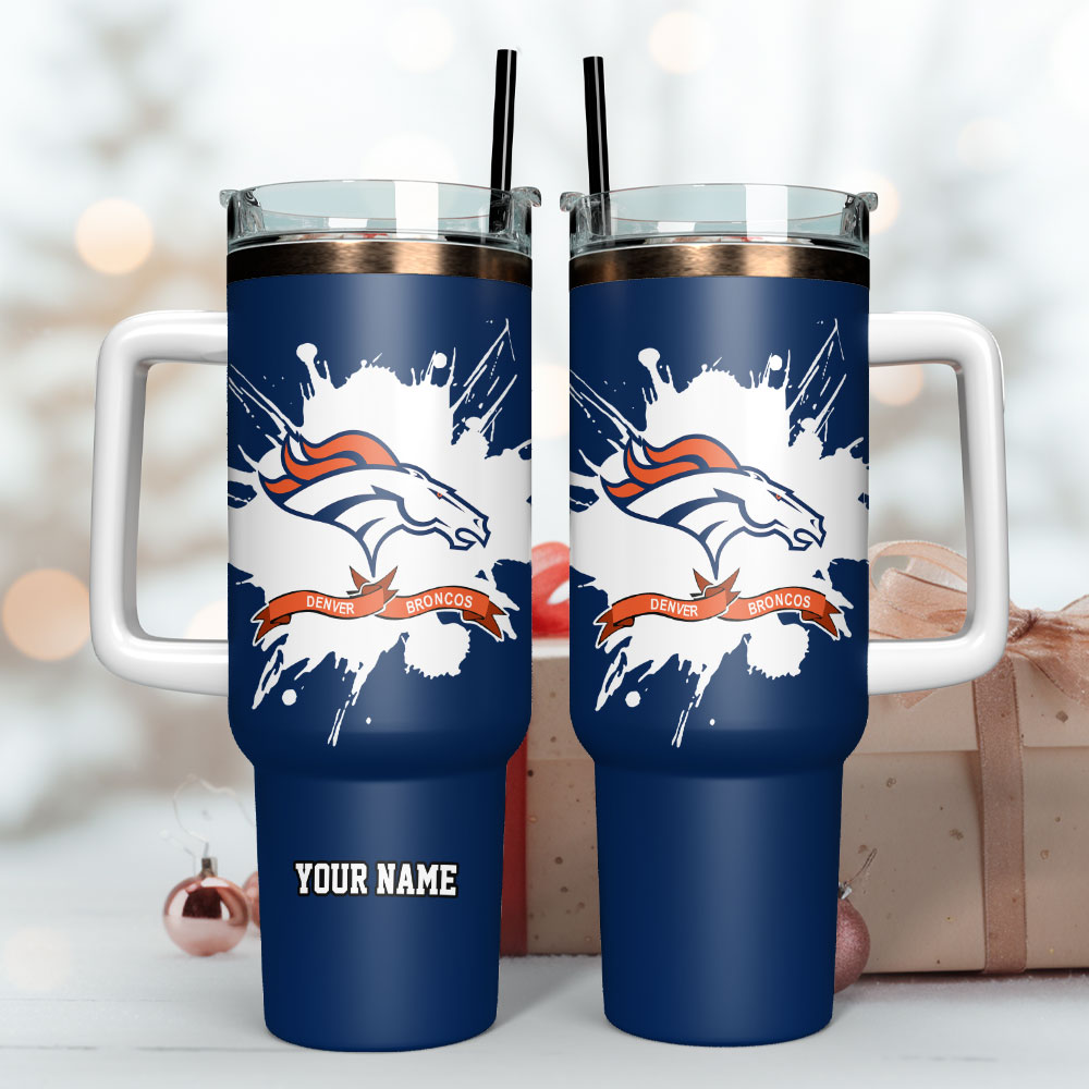 Denver Broncos Football Nfl Sport Custom Stanley Quencher 40Oz Stainless Steel Tumbler With Handle