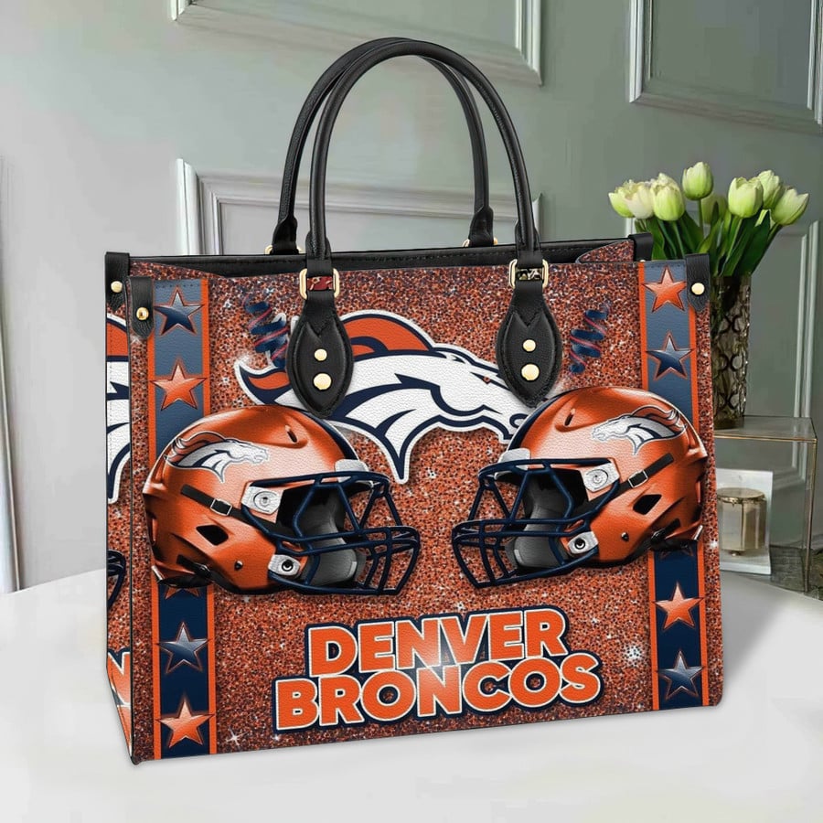 Denver Broncos Leather Hand Bag For Women Sport Wear Fans Black Strap