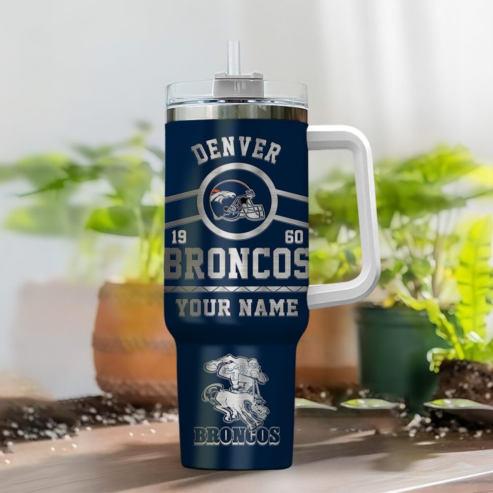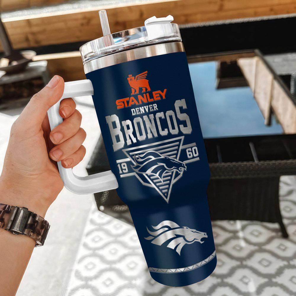 Denver Broncos Nfl Custom Stanley Quencher 40Oz Stainless Steel Tumbler With Handle