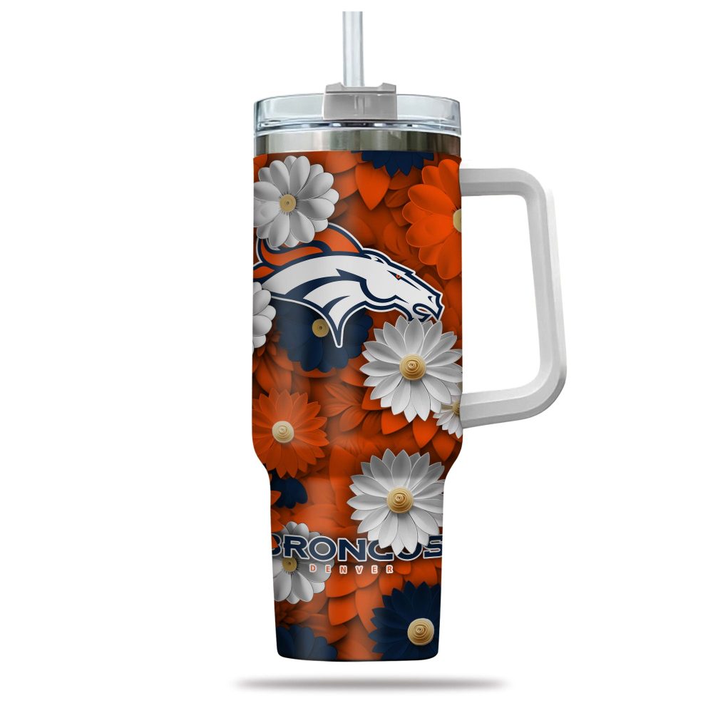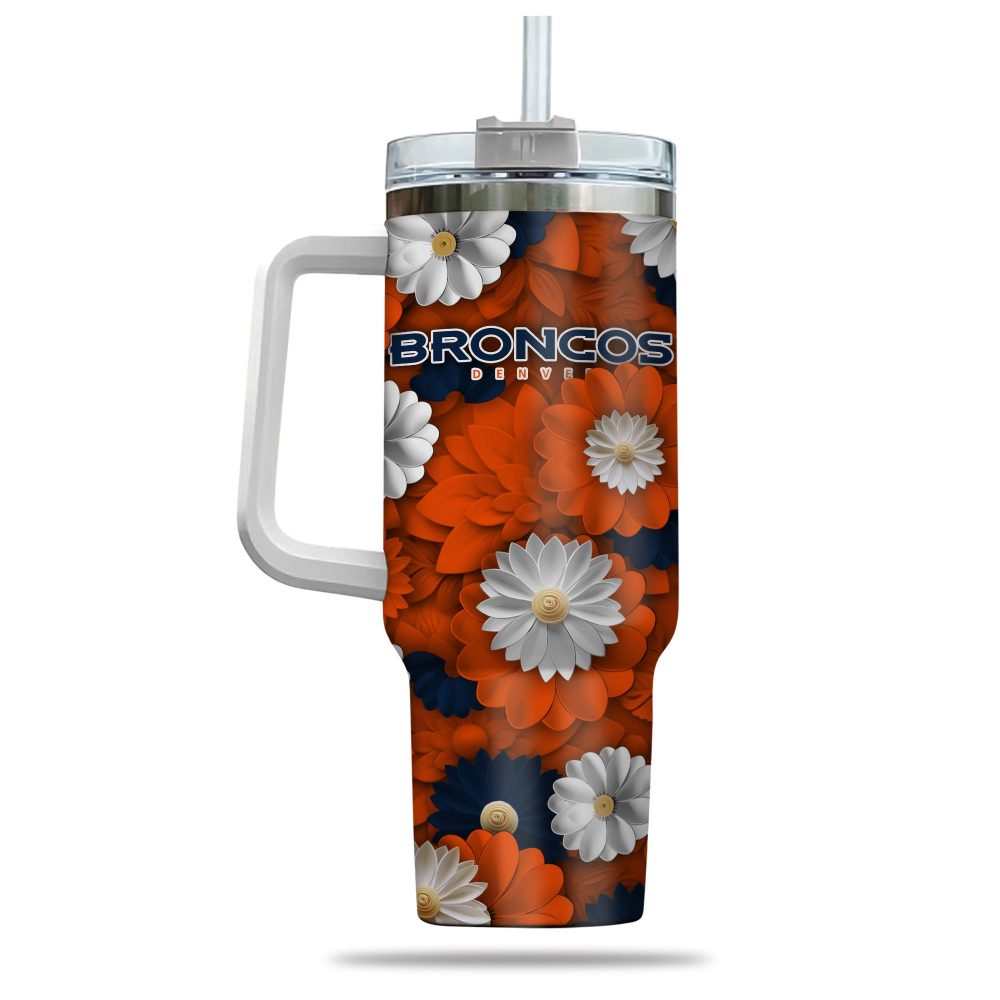 Denver Broncos Nfl Flowers Custom Stanley Quencher 40Oz Stainless Steel Tumbler With Handle