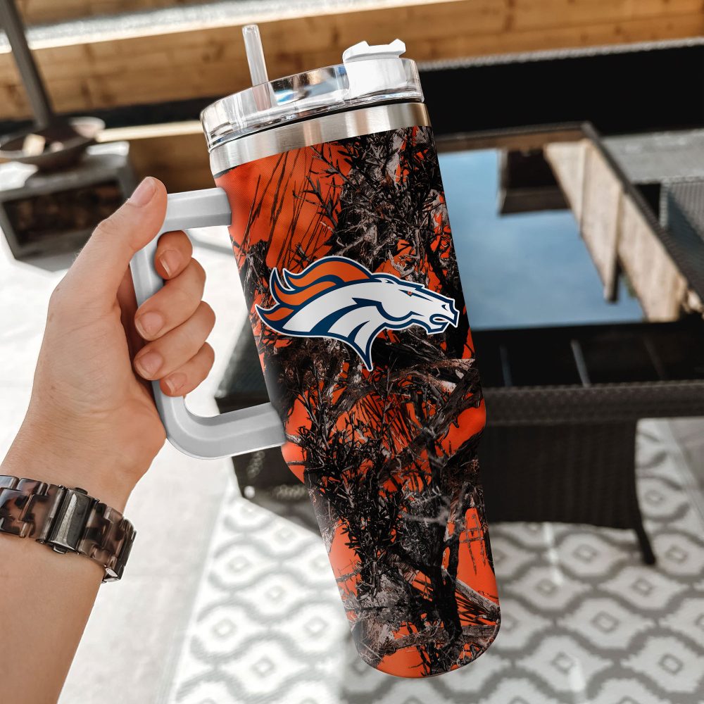 Denver Broncos Nfl Hunting Custom Stanley Quencher 40Oz Stainless Steel Tumbler With Handle
