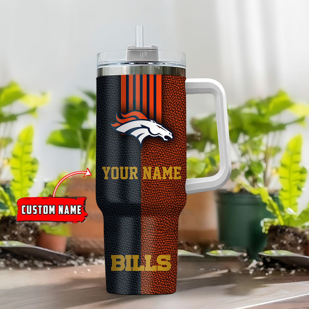 Denver Broncos Nfl Leather Effect Custom Stanley Quencher 40Oz Stainless Steel Tumbler With Handle
