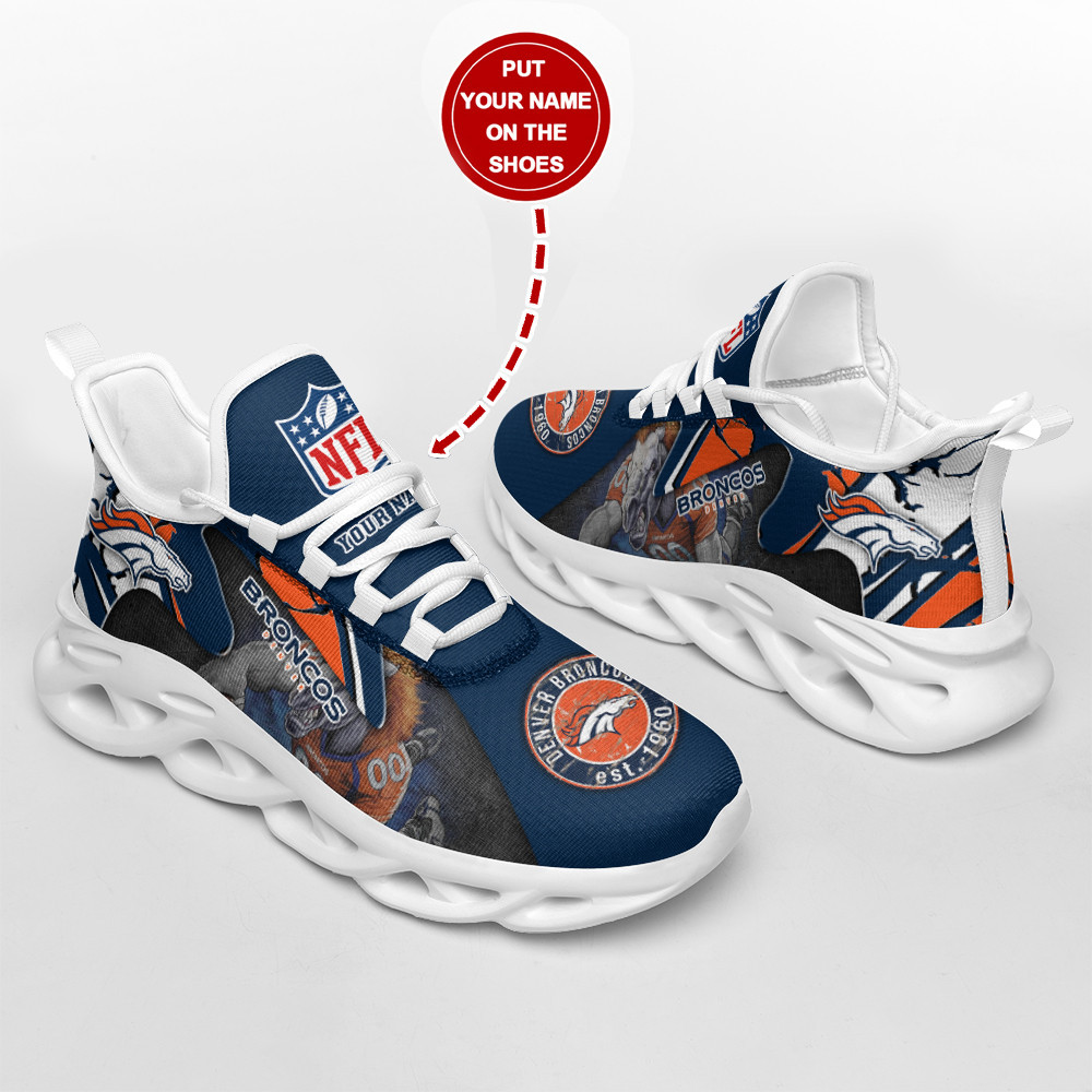 Denver Broncos NFL Max Soul Shoes Sneakers Printed White And Black Sole For Men And Women