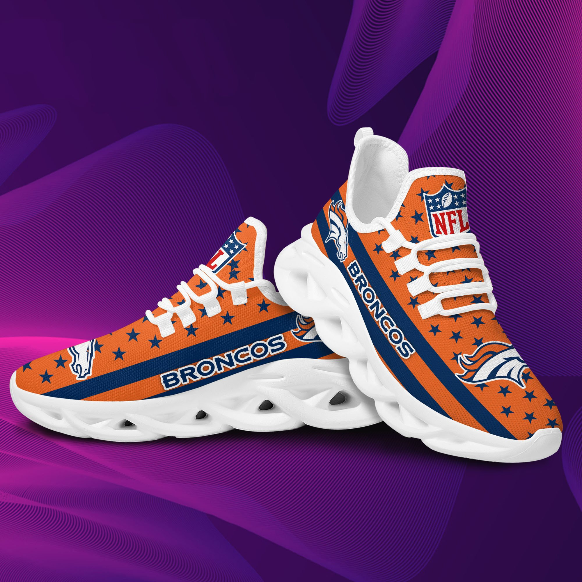 Denver Broncos NFL Max Soul Shoes Sneakers Printed White And Black Sole For Men And Women