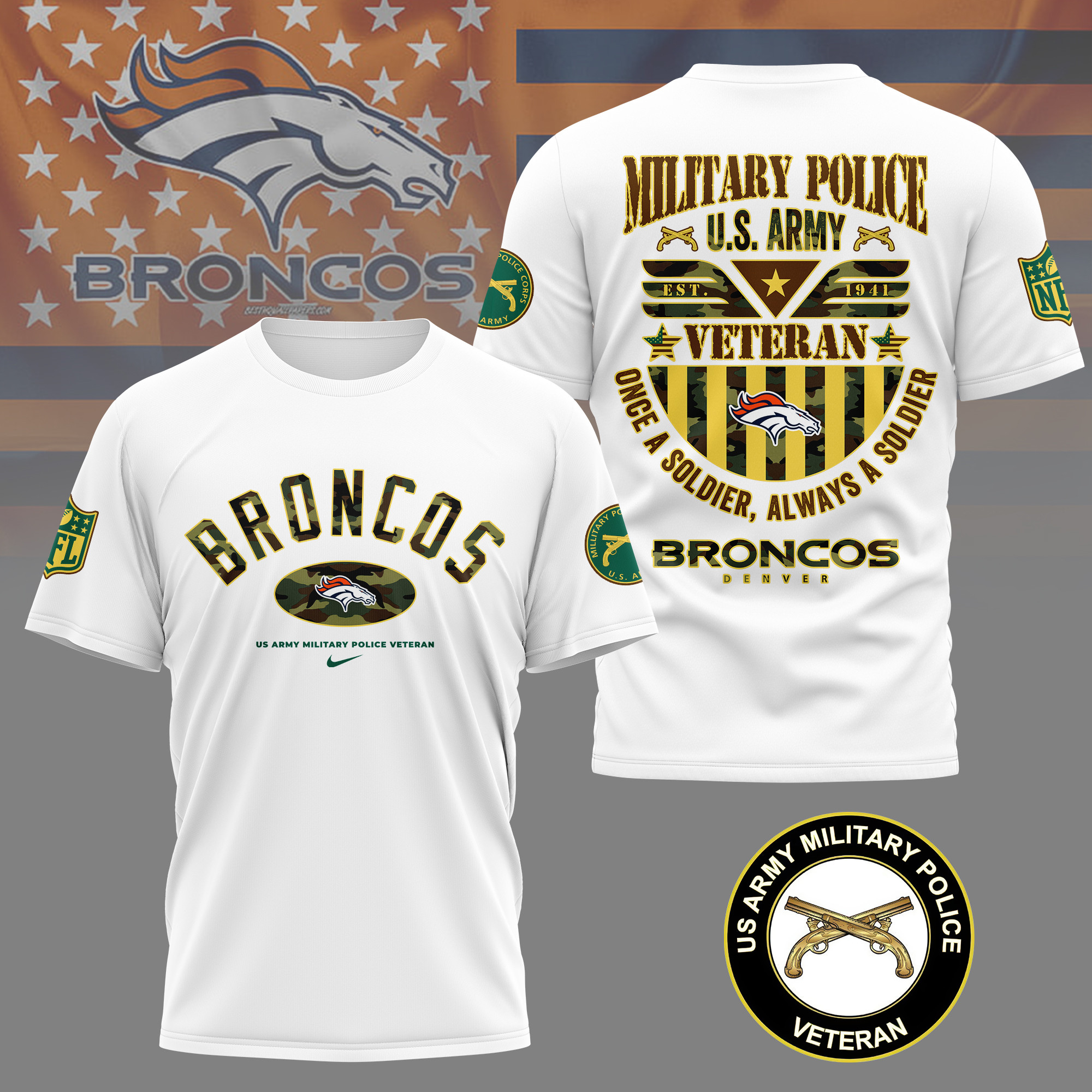 Denver Broncos Premium Us Army Military Police Veteran 3D Shirt