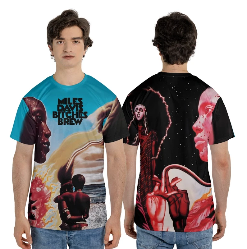 High-quality all-over print t-shirts with in-house manufacturing. Customize the front, back, and sleeves with logos, quotes, paintings, or drawings. No limit or minimum order quantity, making it easy to create a unique design quickly.