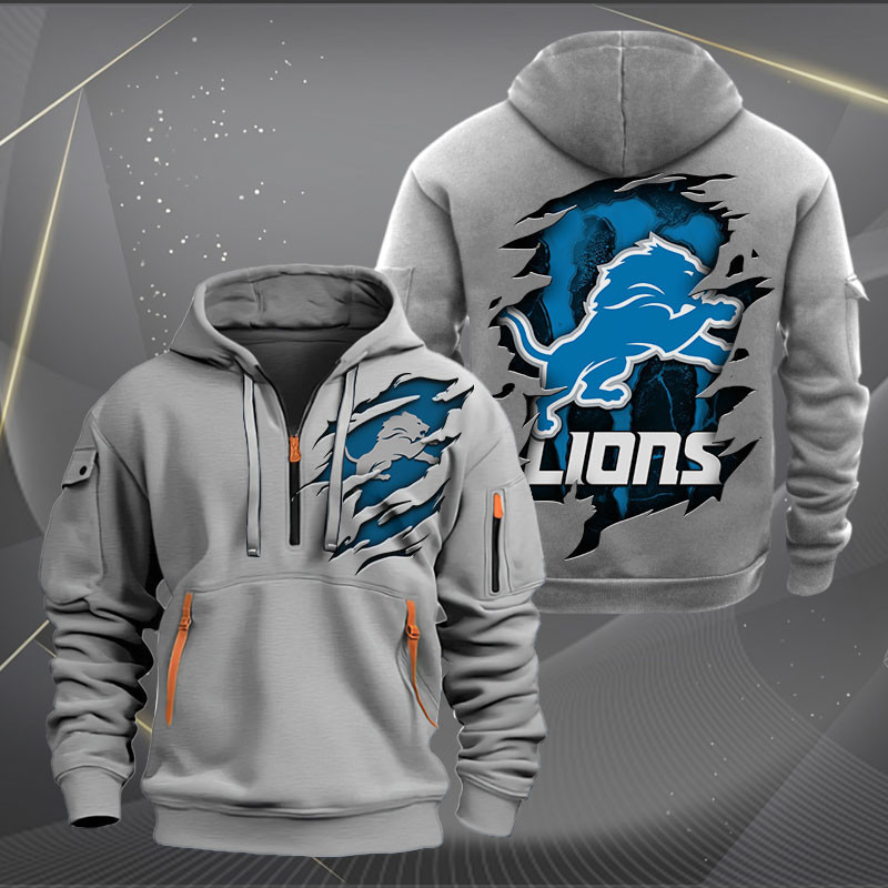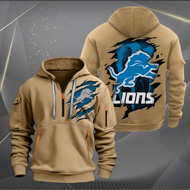 Detroit Lions Logo Quarter Zip Hoodie Custom Collection
