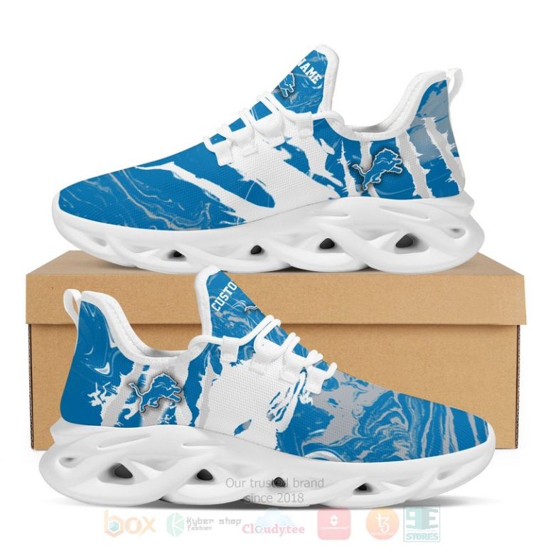 Detroit Lions Max Soul Shoes Sneakers Printed White And Black Sole For Men And Women
