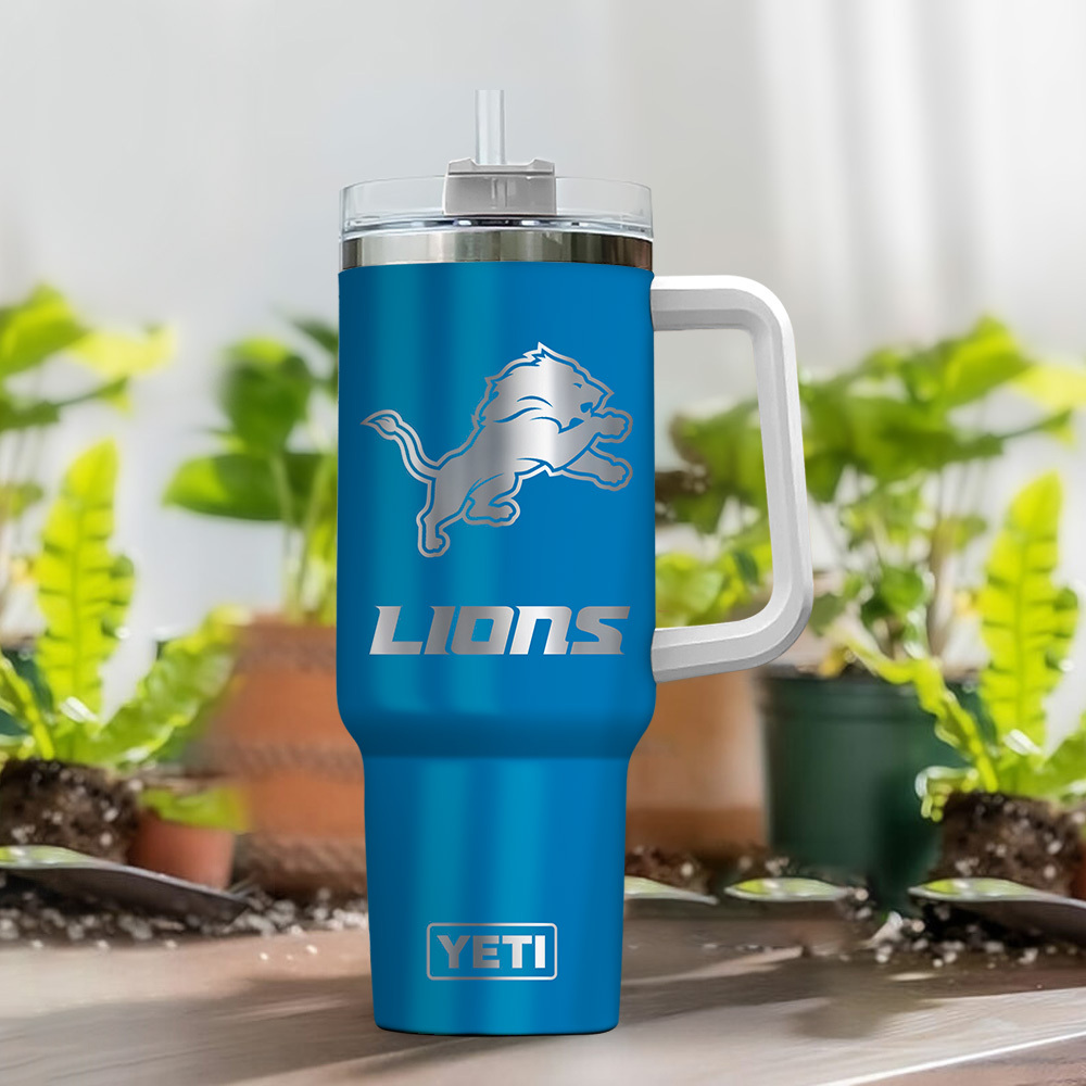 Detroit Lions Nfl Laser Engraved Effect Custom Stanley Quencher 40Oz Stainless Steel Tumbler With Handle