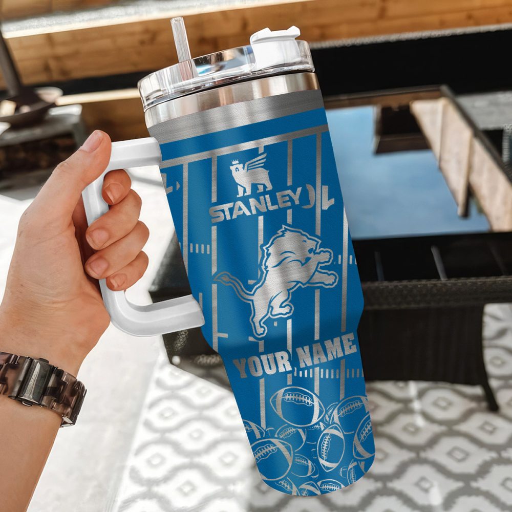 Detroit Lions Nfl Silver Custom Stanley Quencher 40Oz Stainless Steel Tumbler With Handle