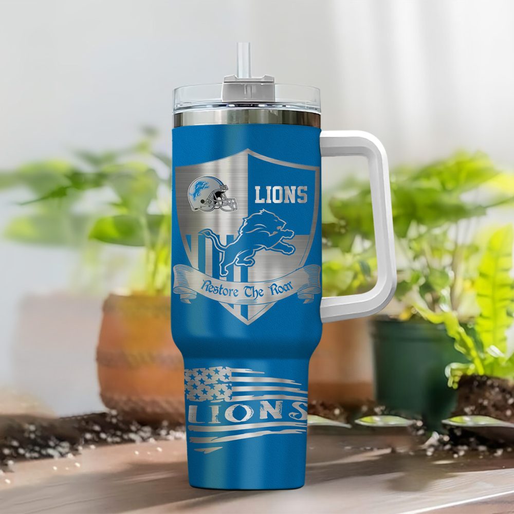 Detroit Lions Nfl Silver Logo Custom Stanley Quencher 40Oz Stainless Steel Tumbler With Handle
