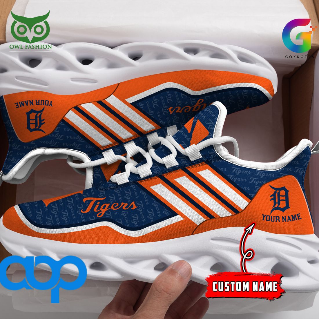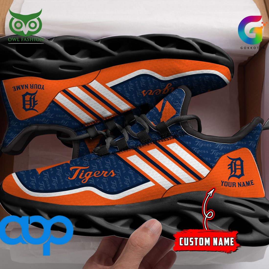 Detroit Tigers Max Soul Shoes Sneakers Printed White And Black Sole For Men And Women