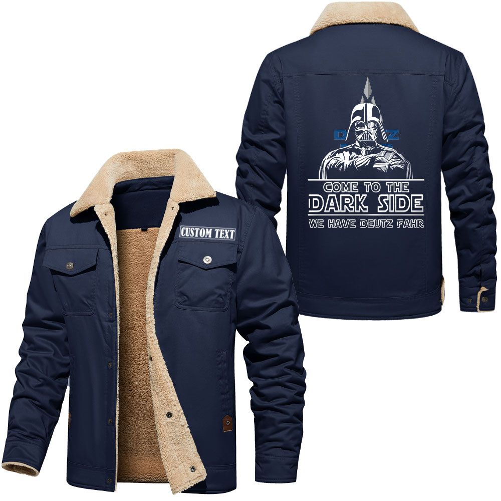 Deutz Fahr Logo Custom Name Cargo Fleece Lined Cotton Jacket Personalized Outerwear with Dark Side Star Wars Design