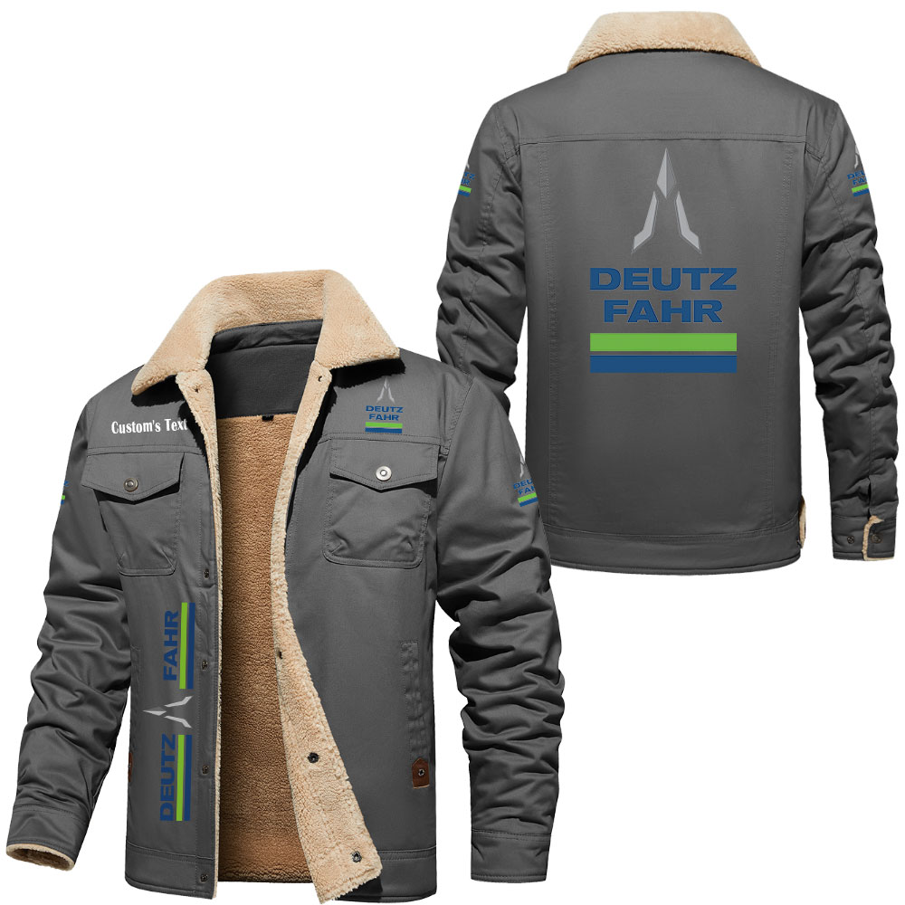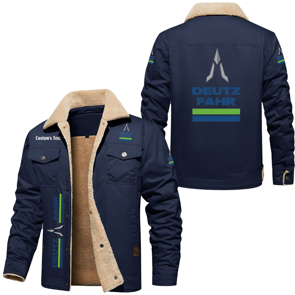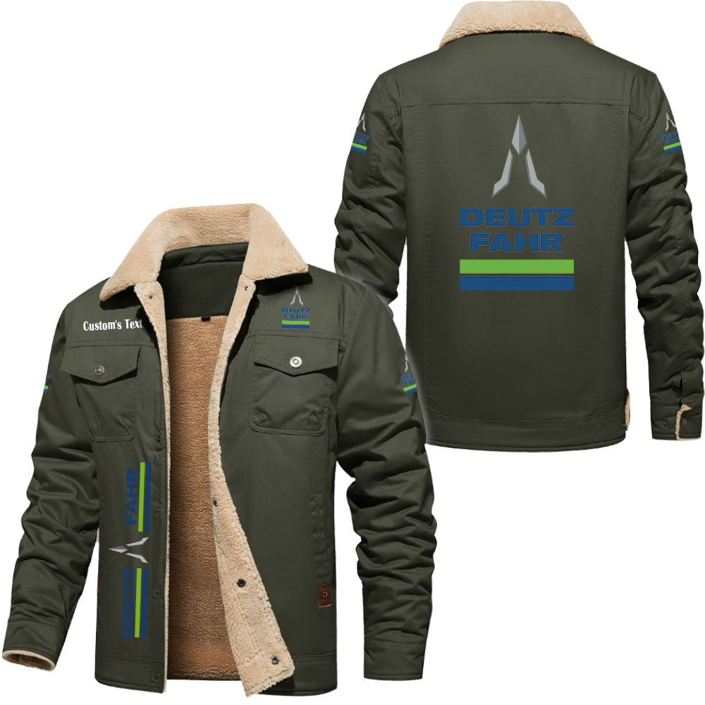 Deutz Fahr Logo Custom Text Cargo Fleece Lined Cotton Jacket