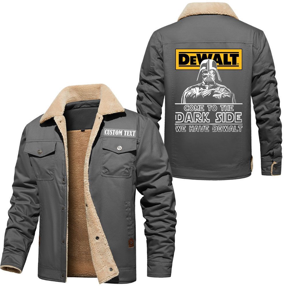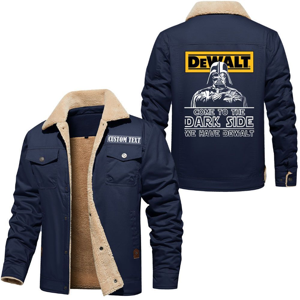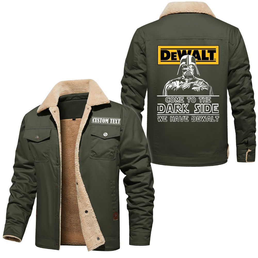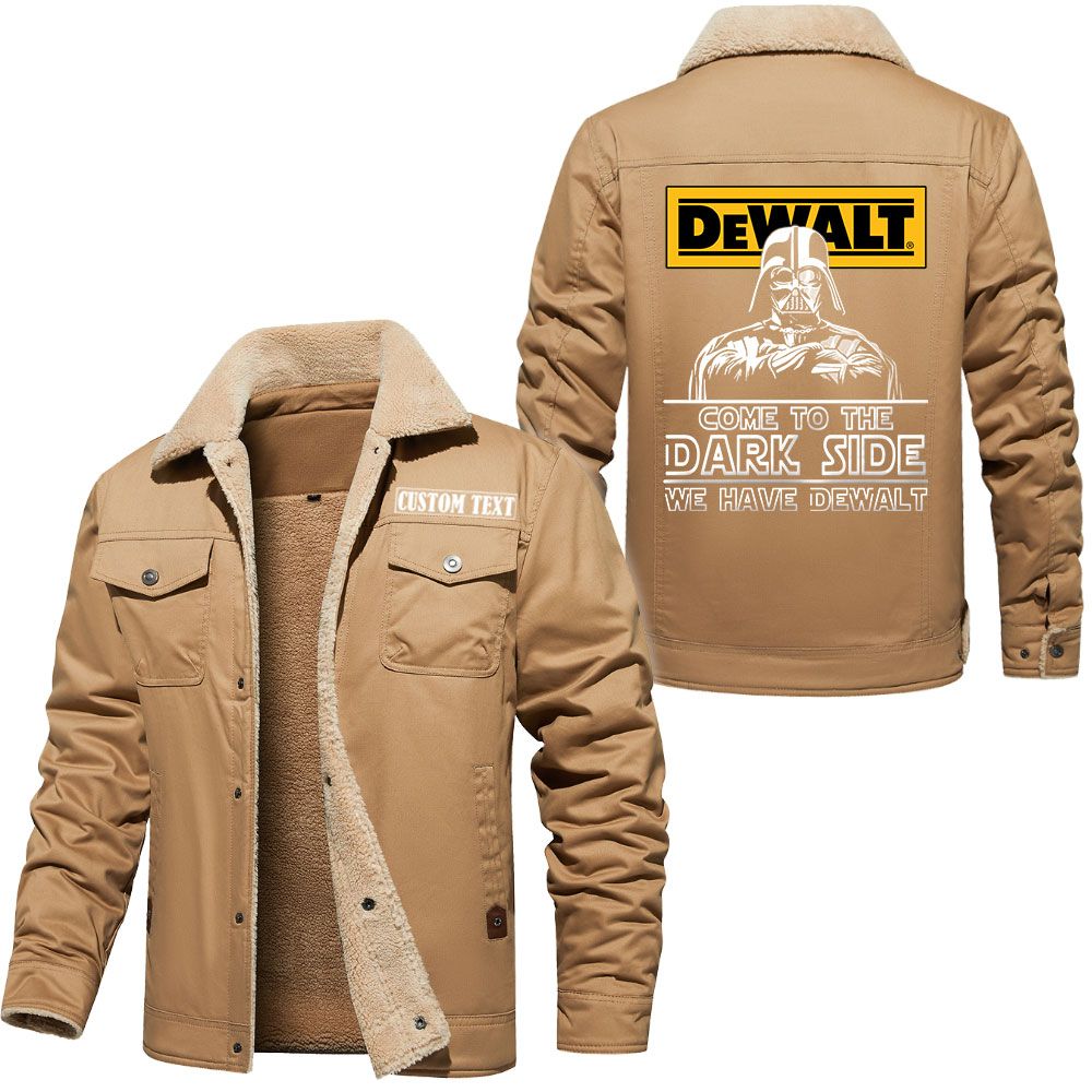 DeWalt Logo Custom Name Cargo Fleece Lined Cotton Jacket Personalized Outerwear with Dark Side Star Wars Design