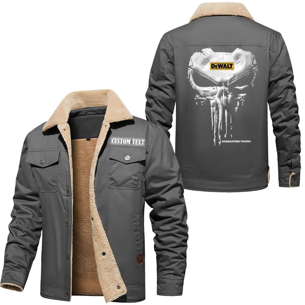 DeWalt Logo Custom Name Cargo Fleece Lined Cotton Jacket Personalized Outerwear with Punisher Skull Design
