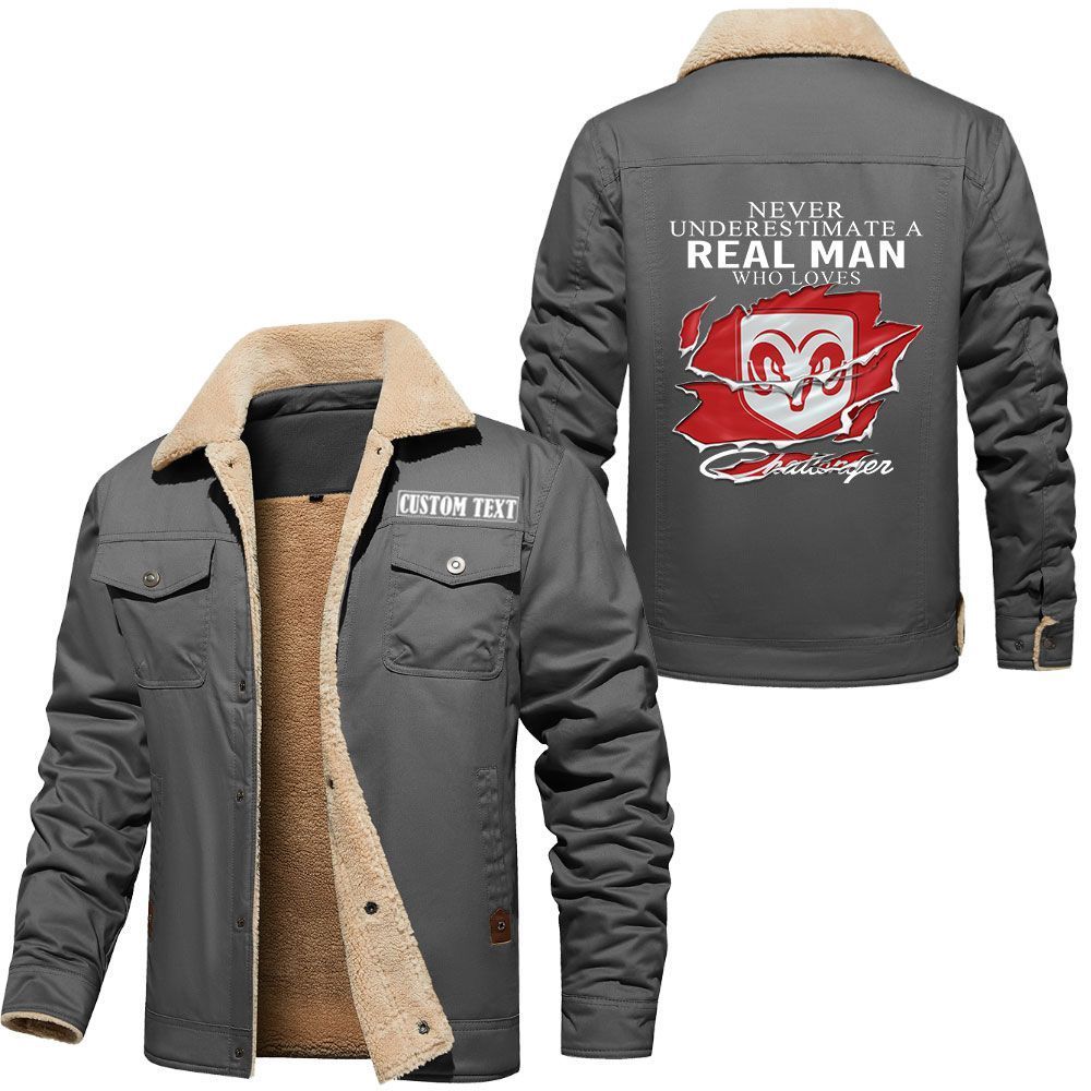 Dodge Challenger Logo Custom Name Cargo Fleece Lined Cotton Jacket A Real Man Who Loves Personalized Outerwear