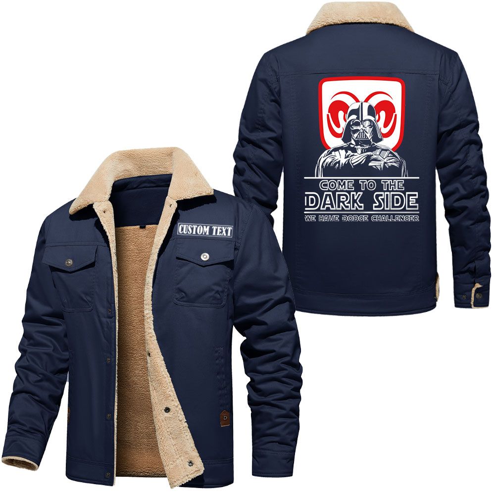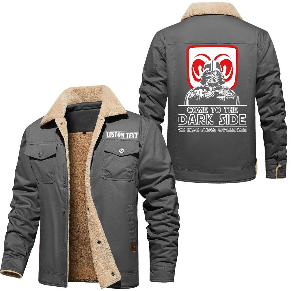 Dodge Challenger Logo Custom Name Cargo Fleece Lined Cotton Jacket Personalized Outerwear with Dark Side Star Wars Design