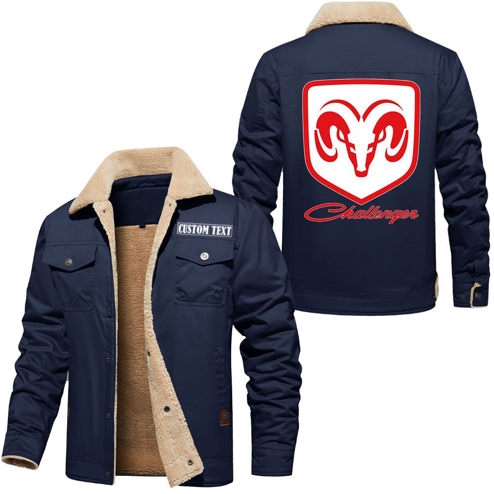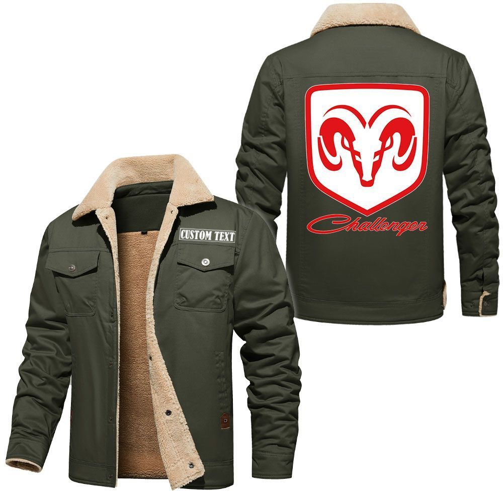 Dodge Challenger Logo Custom Name Cargo Fleece Lined Cotton Jacket Stylish Warm Personalized Outerwear