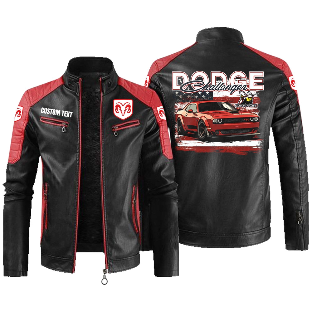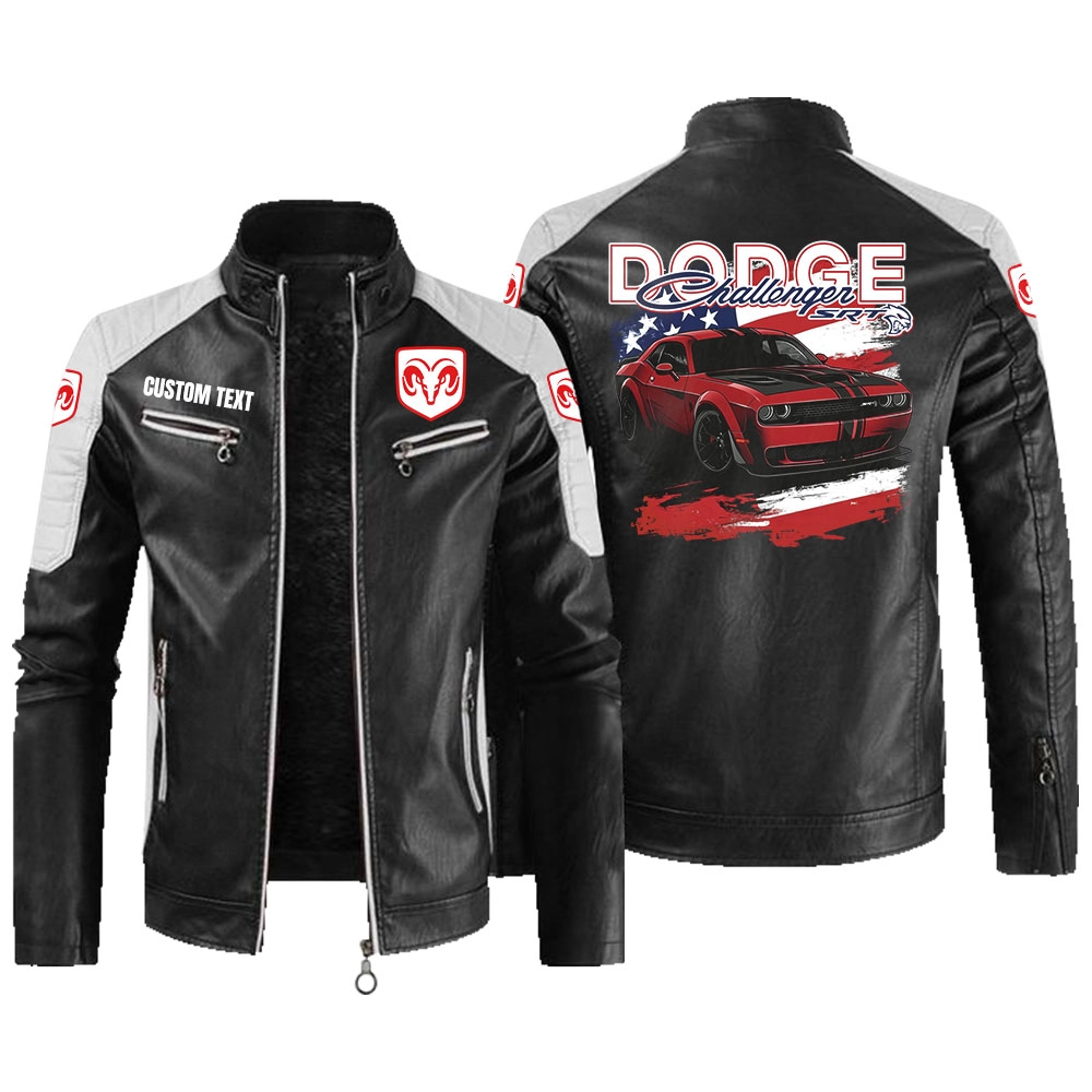 Dodge Challenger Scat Pack Leather Biker Jacket Custom Name And Logo