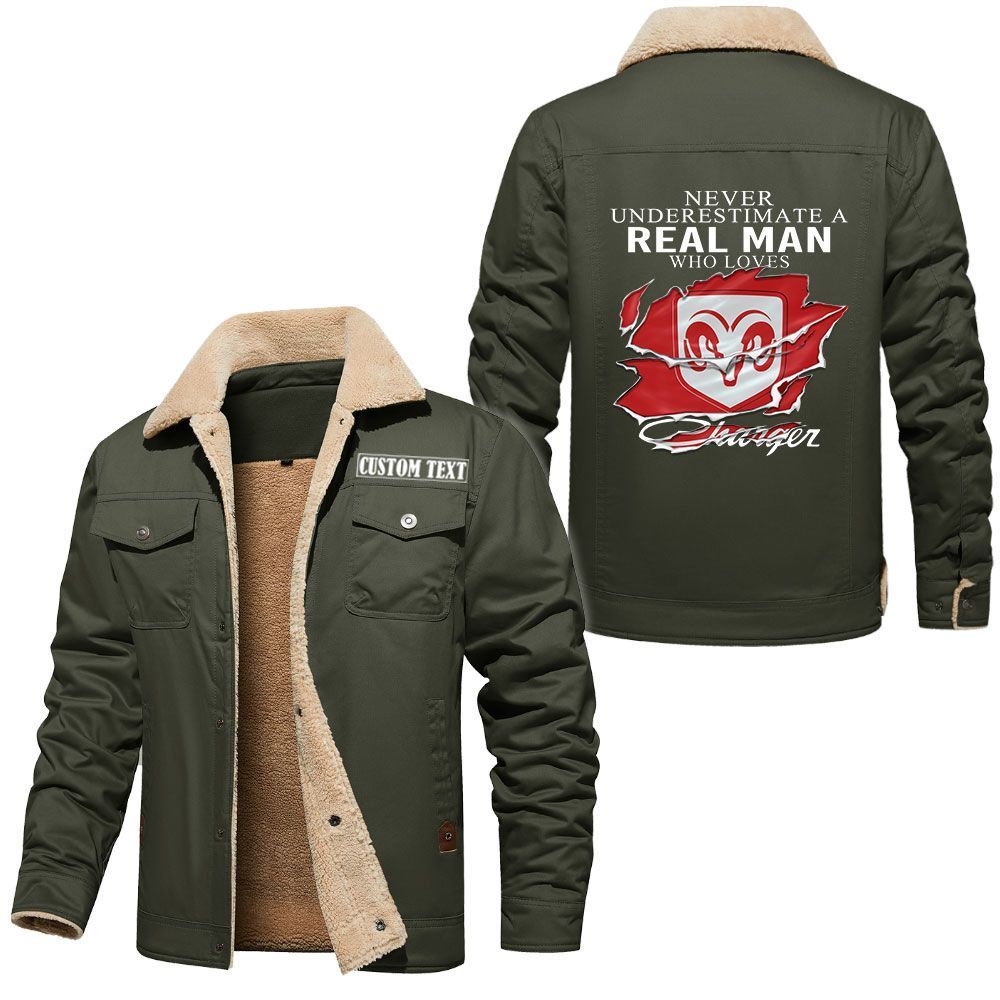 Dodge Charger Logo Custom Name Cargo Fleece Lined Cotton Jacket A Real Man Who Loves Personalized Outerwear