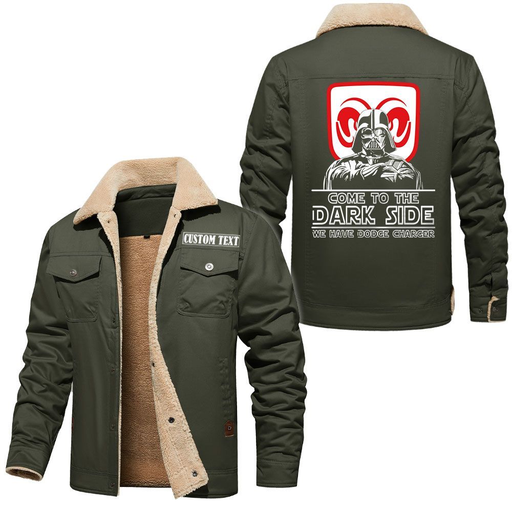 Dodge Charger Logo Custom Name Cargo Fleece Lined Cotton Jacket Personalized Outerwear with Dark Side Star Wars Design
