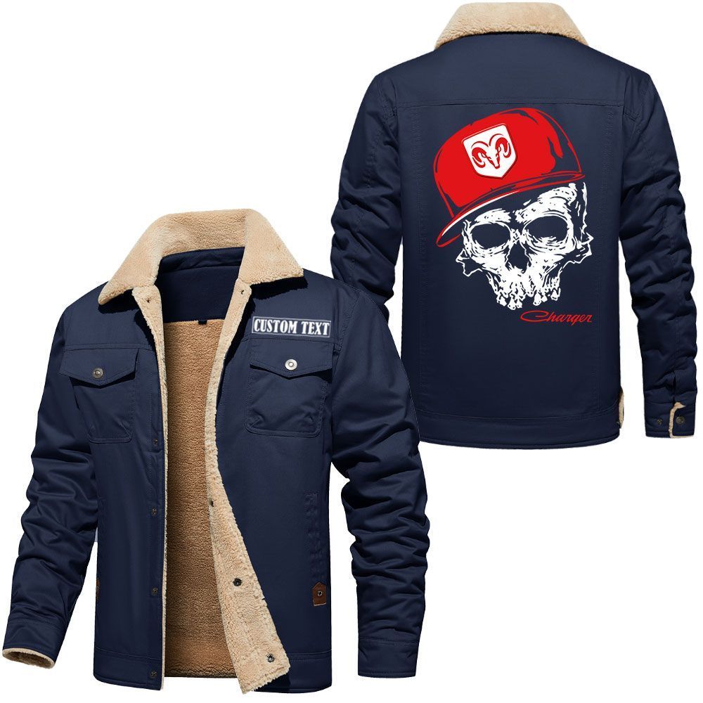 Dodge Charger Logo Custom Name Cargo Fleece Lined Cotton Jacket Personalized Outerwear with Skull Design