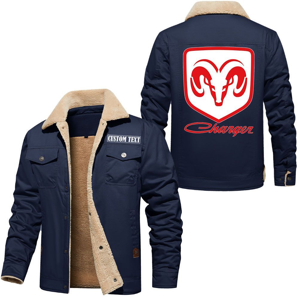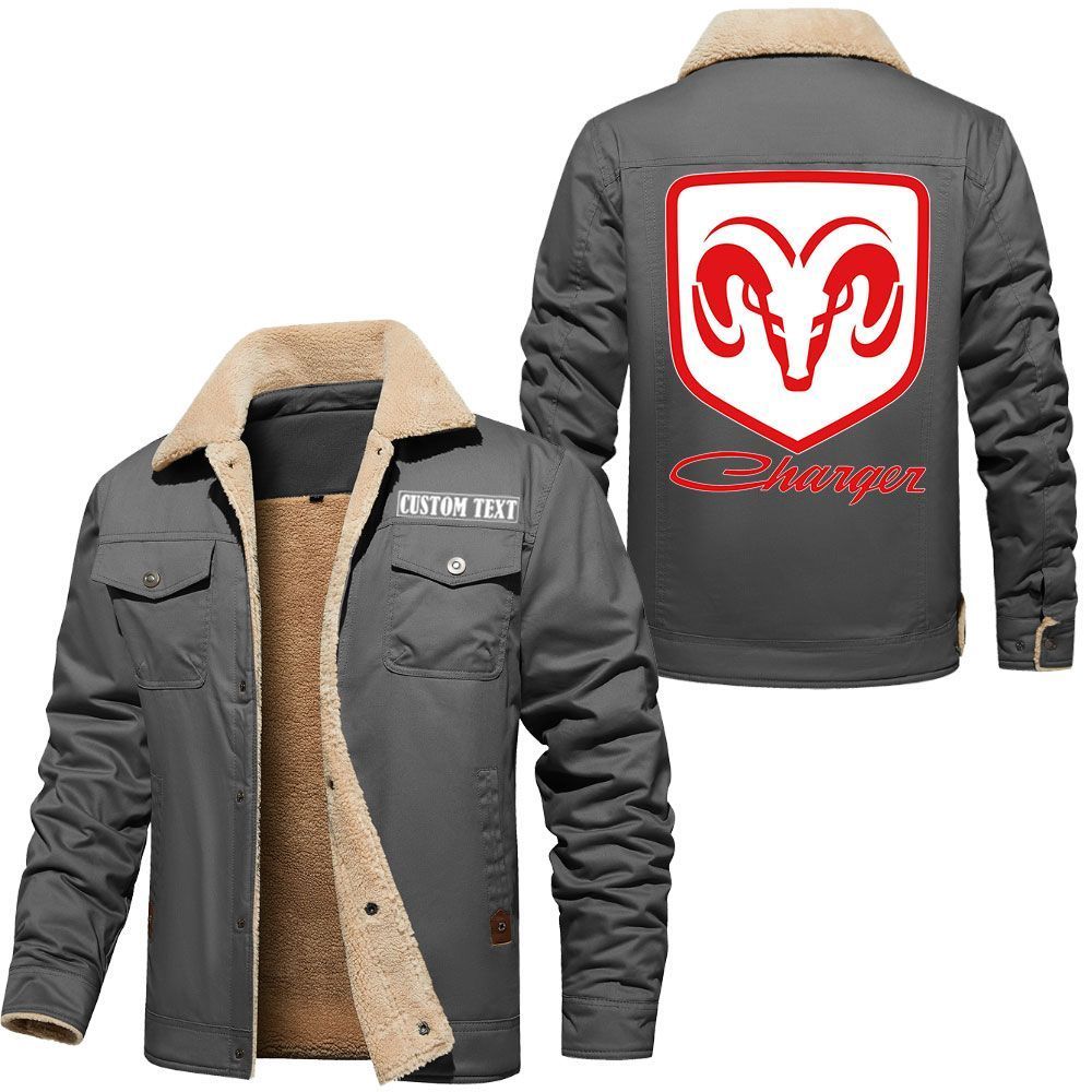 Dodge Charger Logo Custom Name Cargo Fleece Lined Cotton Jacket Stylish Warm Personalized Outerwear