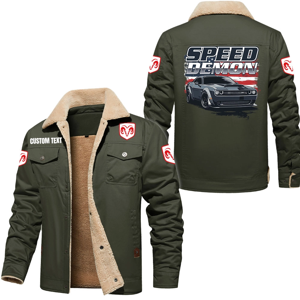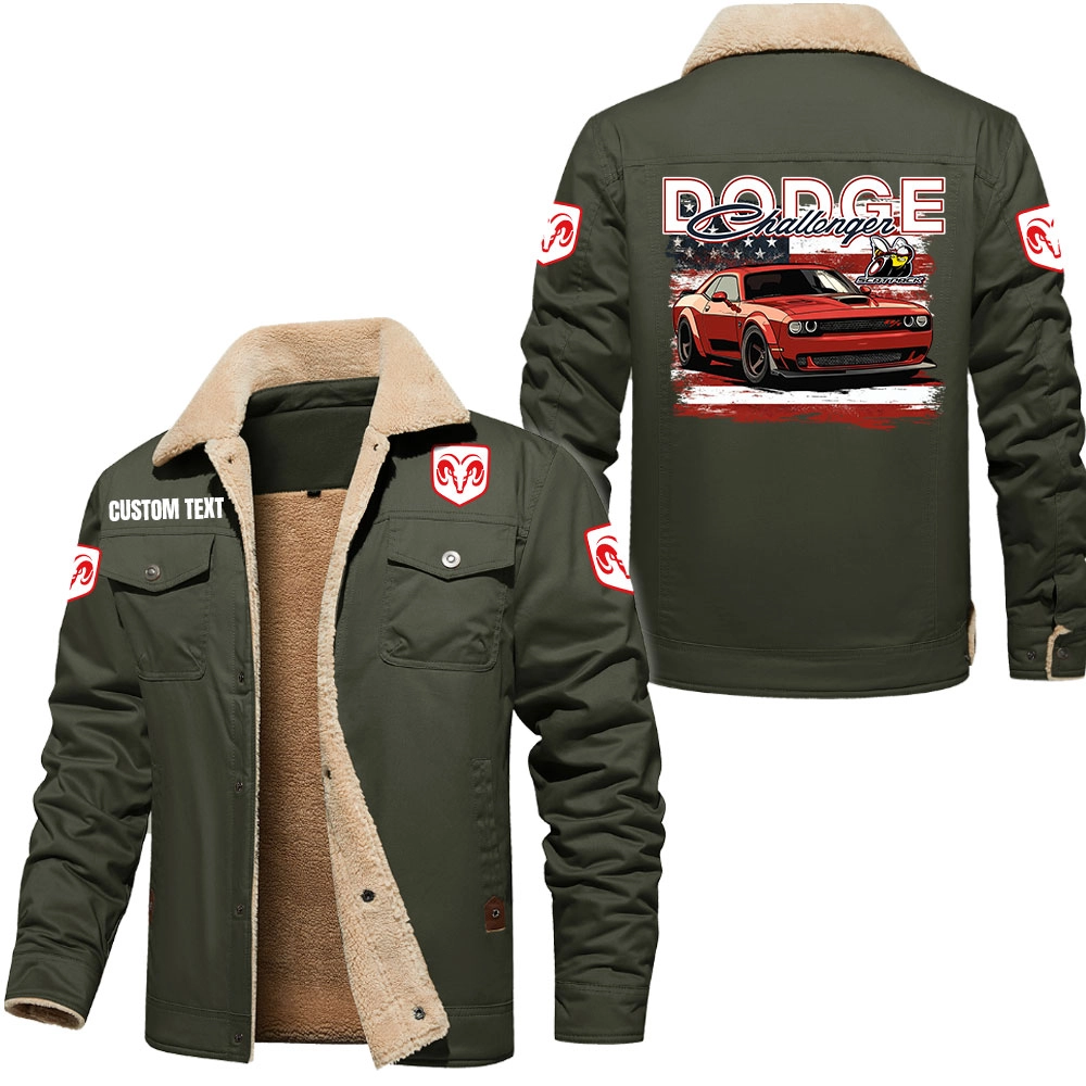 Dodge Charger RT Custom Cargo Fleece Lined Cotton Jacket Army Green