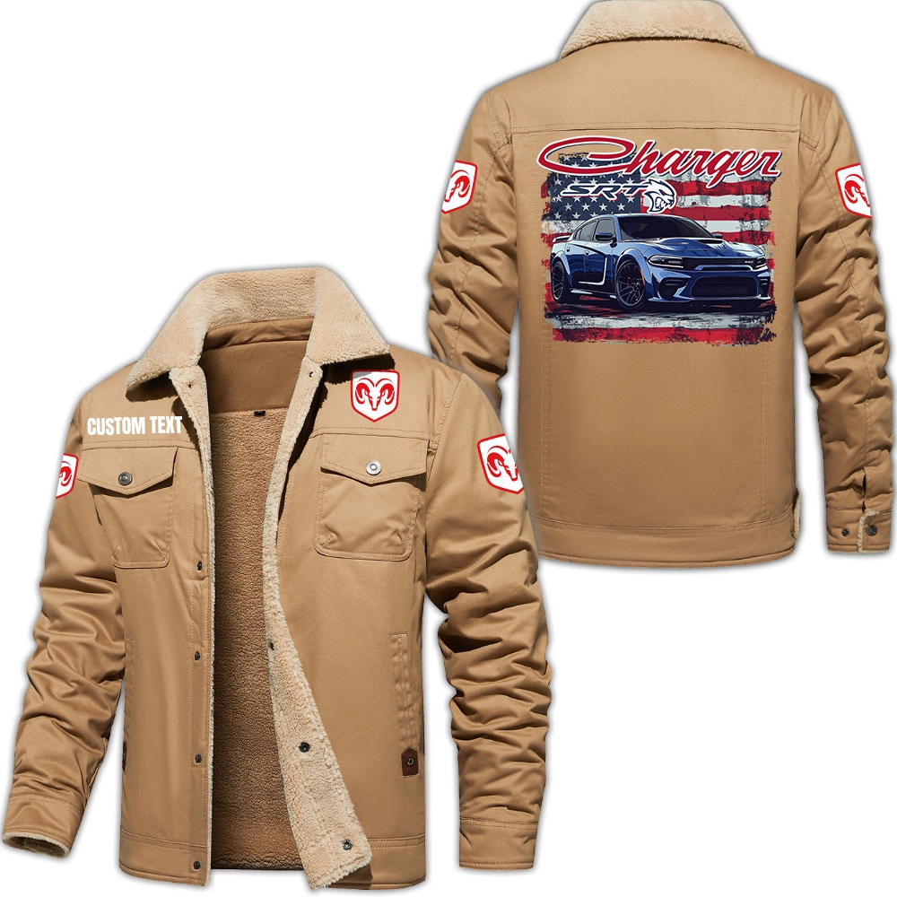 Dodge Charger RT Custom Cargo Fleece Lined Cotton Jacket Khaki