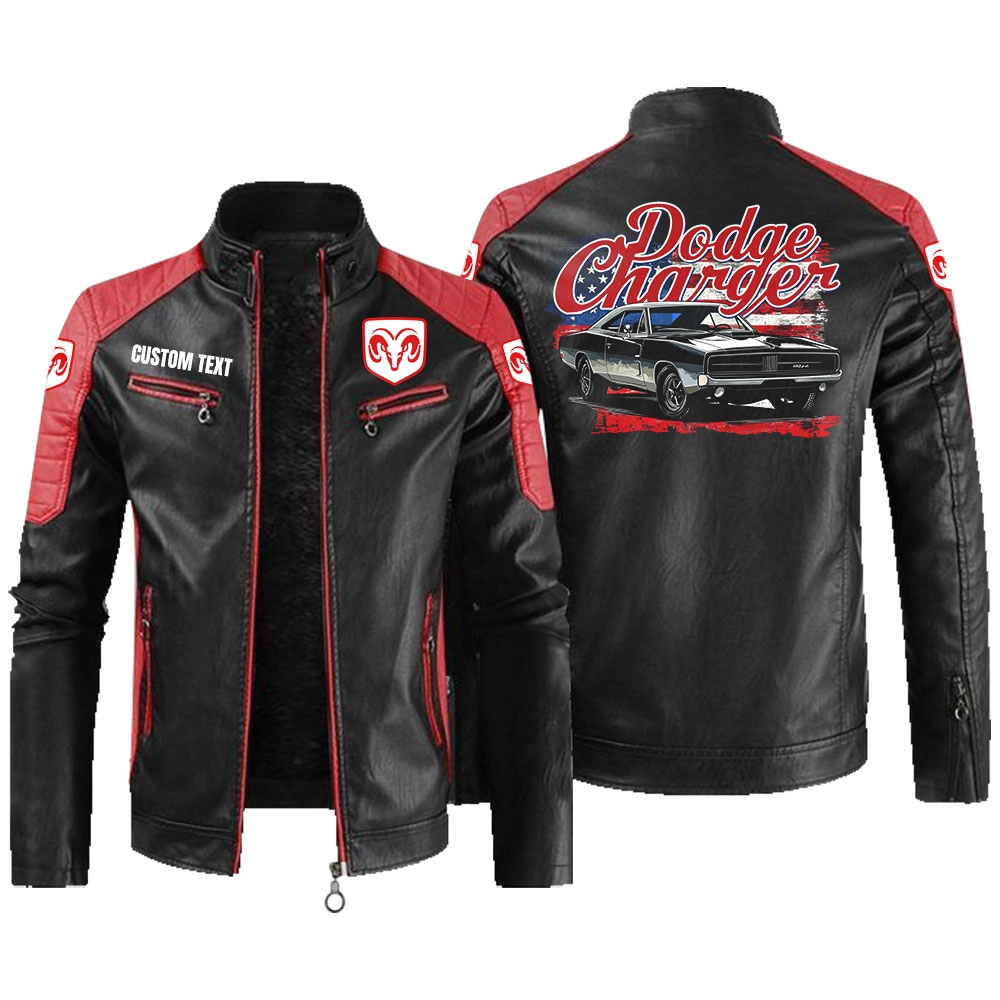 Dodge Charger RT Leather Biker Jacket Custom Name And Logo
