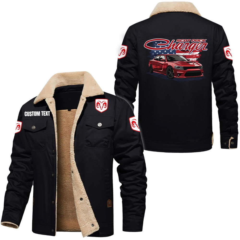 Dodge Charger SRT Hellcat Custom Cargo Fleece Lined Cotton Jacket Black