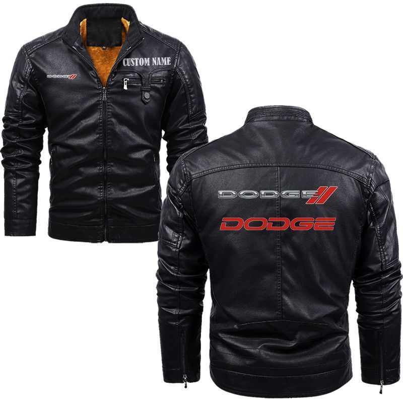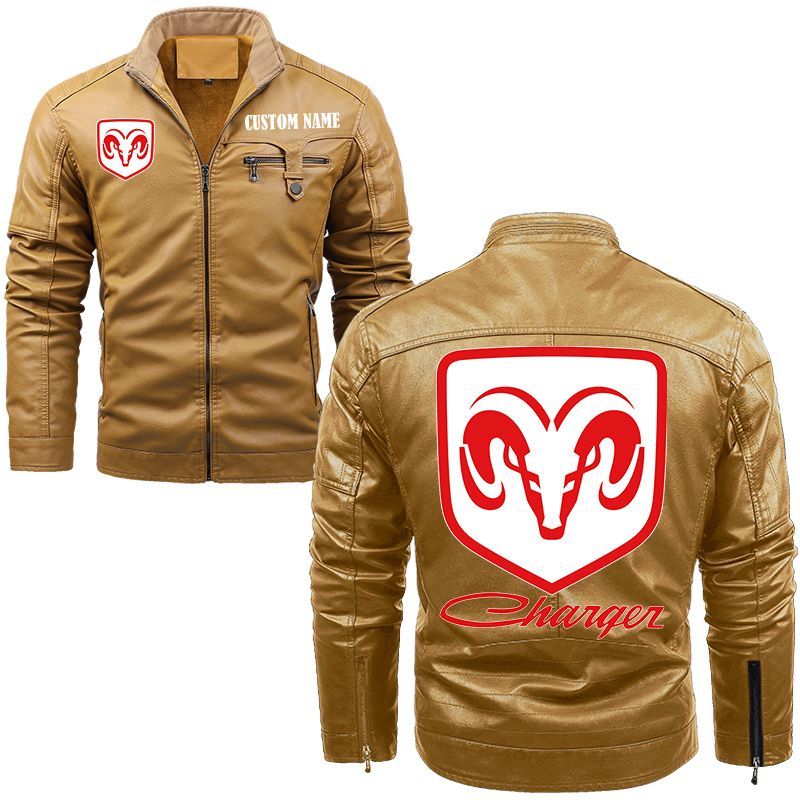 Dodge Charger Zip Pocket Fleece Leather Jacket