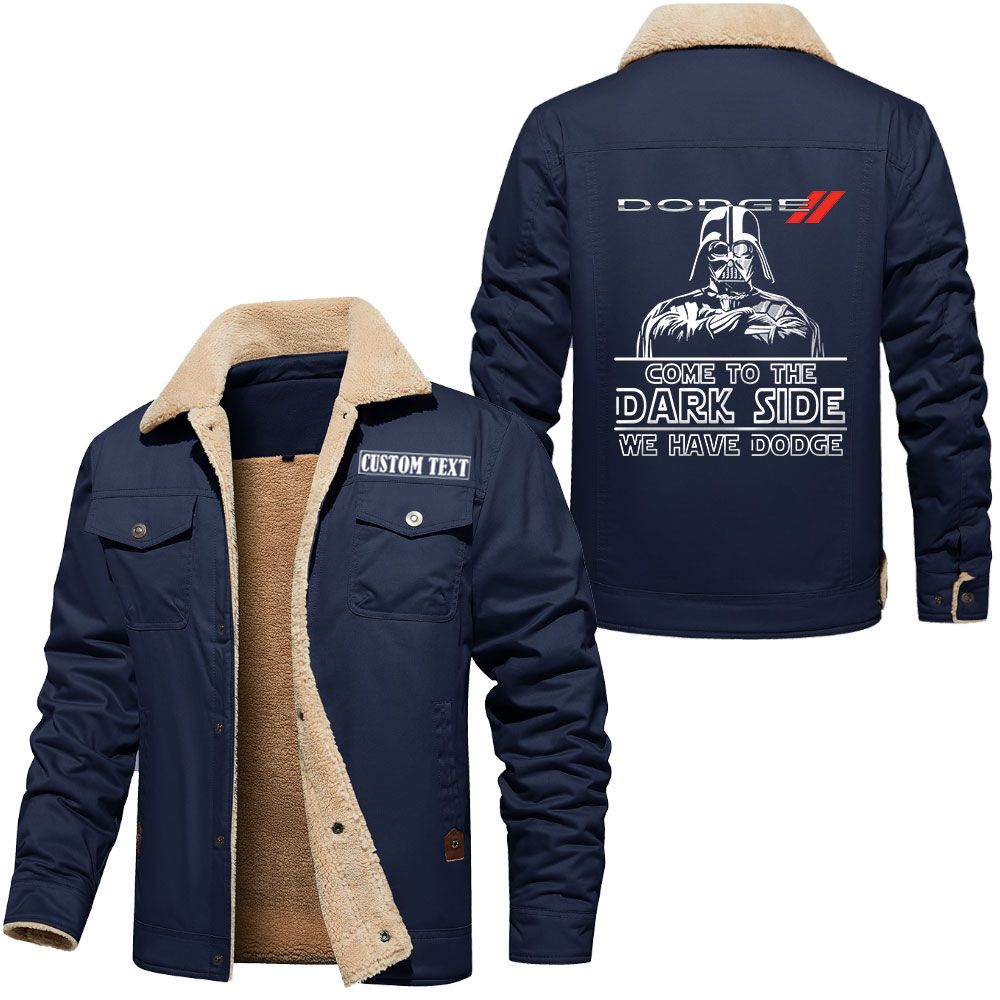 Dodge Logo Custom Name Cargo Fleece Lined Cotton Jacket Personalized Outerwear with Dark Side Star Wars Design