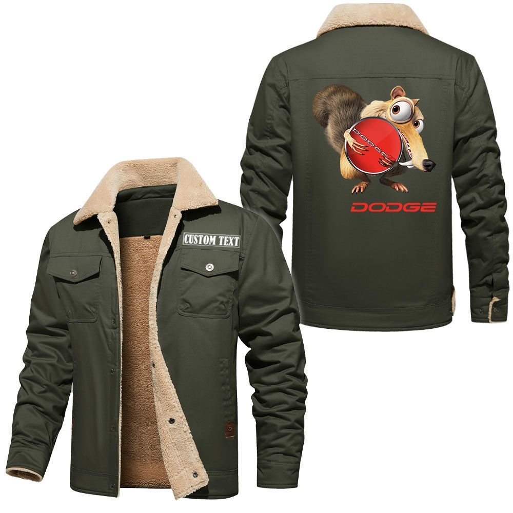 Dodge Logo Custom Name Cargo Fleece Lined Cotton Jacket Scrat Ice Age Design Personalized Outerwear