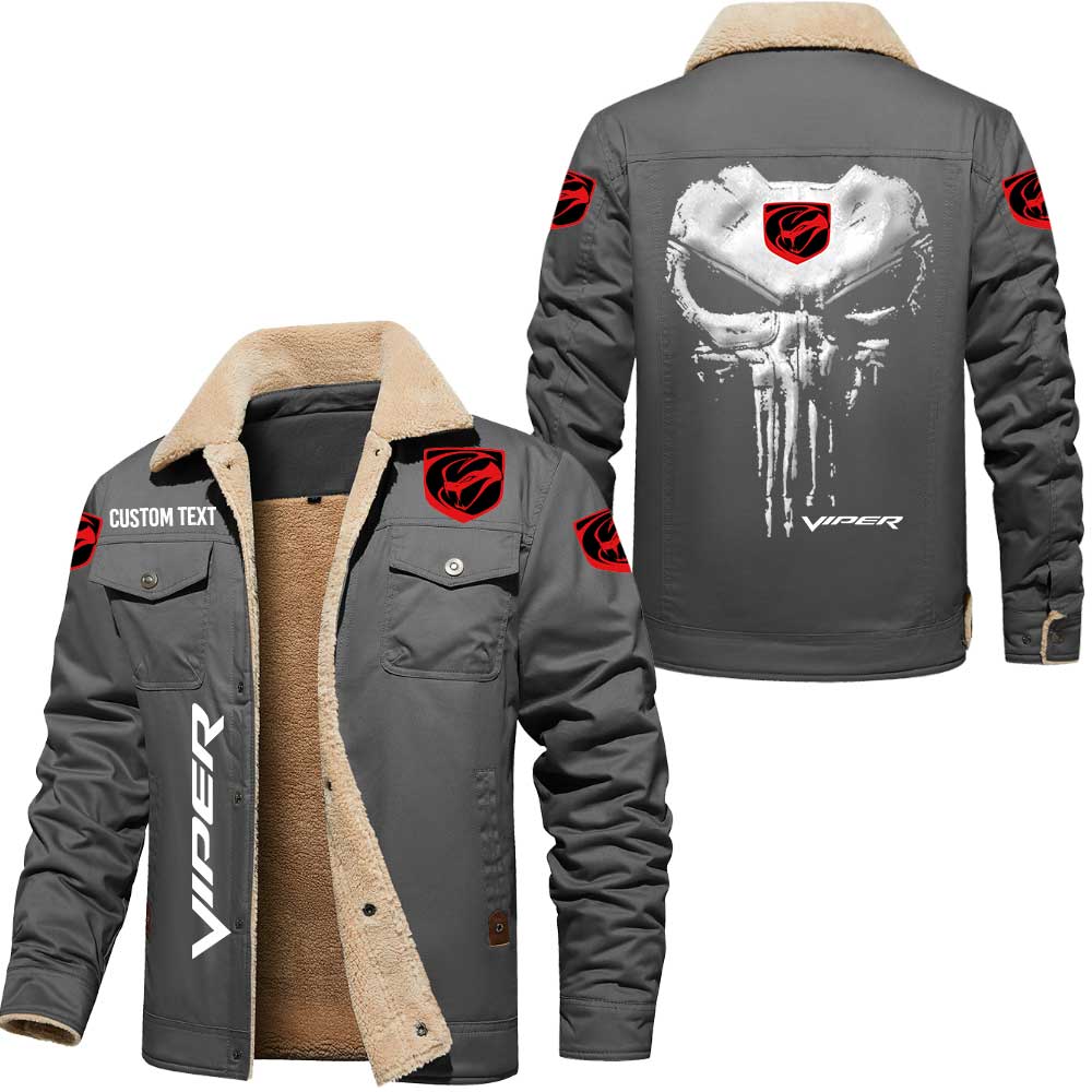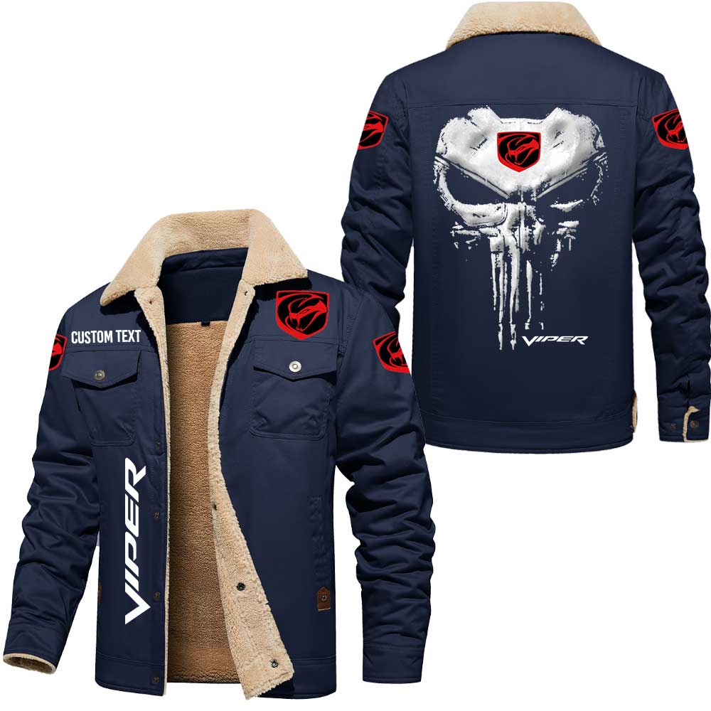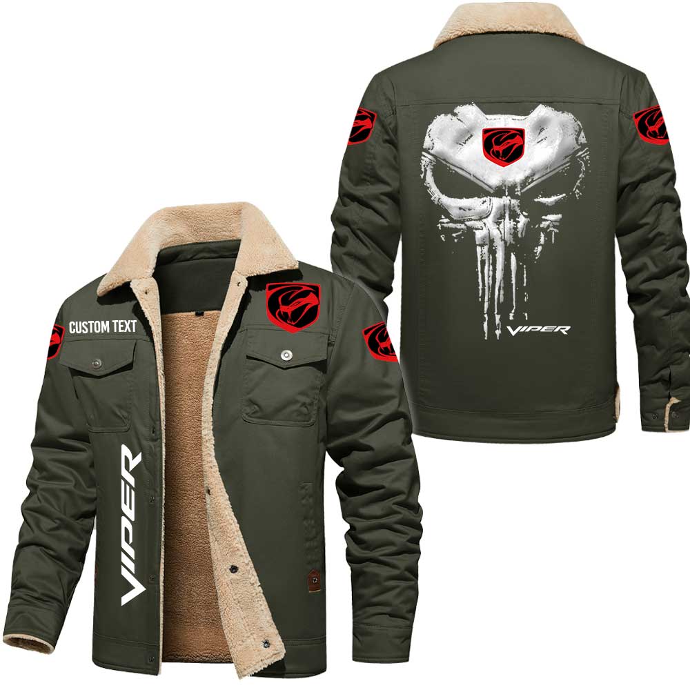 Dodge Viper Logo Skull Design Custom Text Cargo Fleece Lined Cotton Jacket