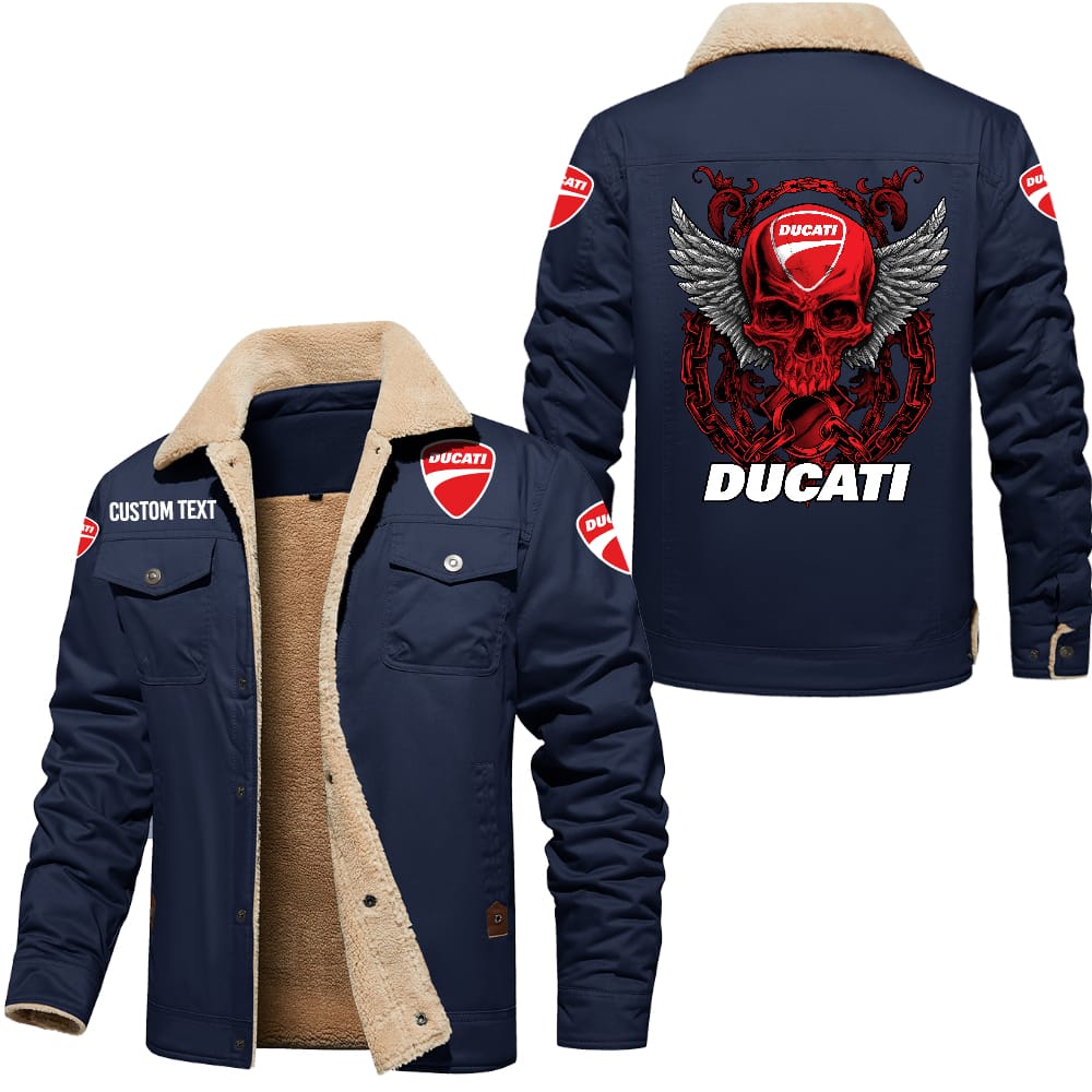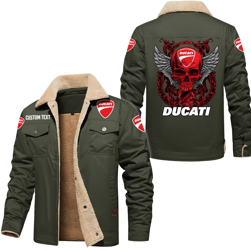 Ducati Custom Name Skull Design Cargo Fleece Lined Cotton Jacket