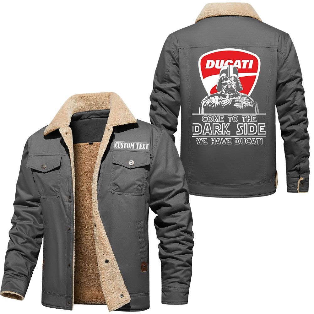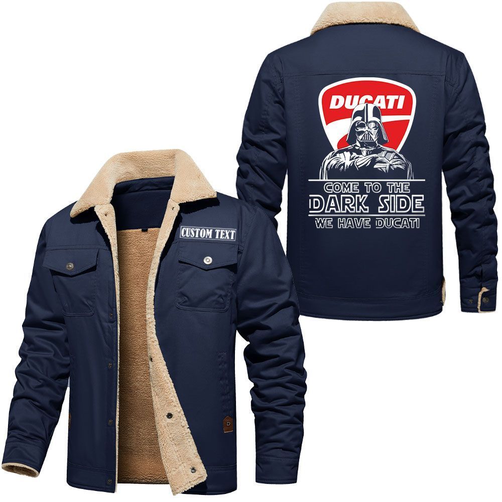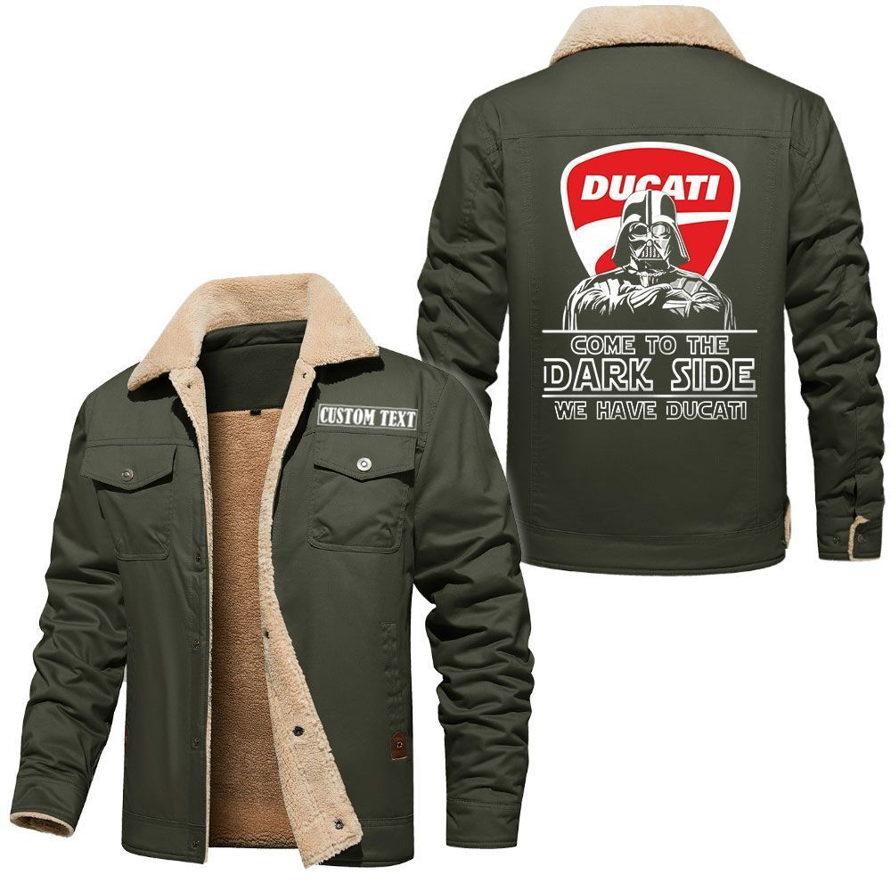 Ducati Logo Custom Name Cargo Fleece Lined Cotton Jacket Personalized Outerwear with Dark Side Star Wars Design