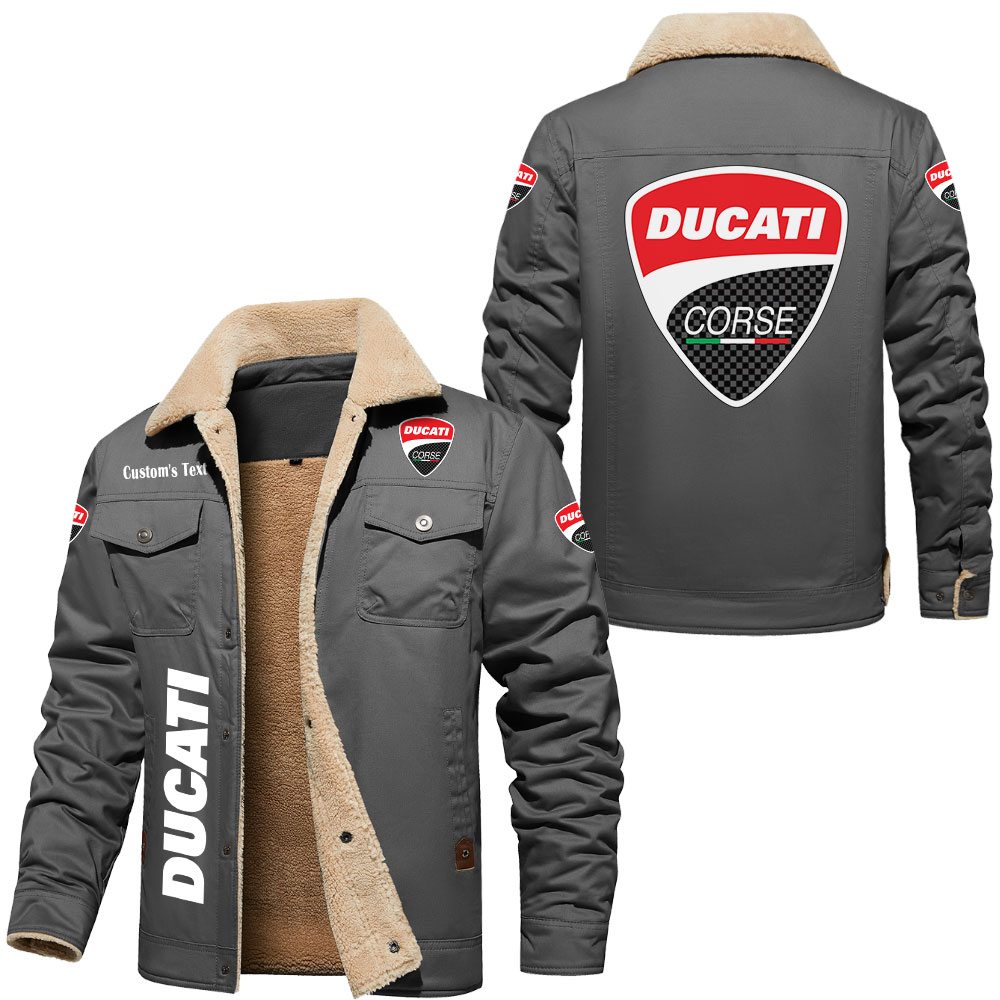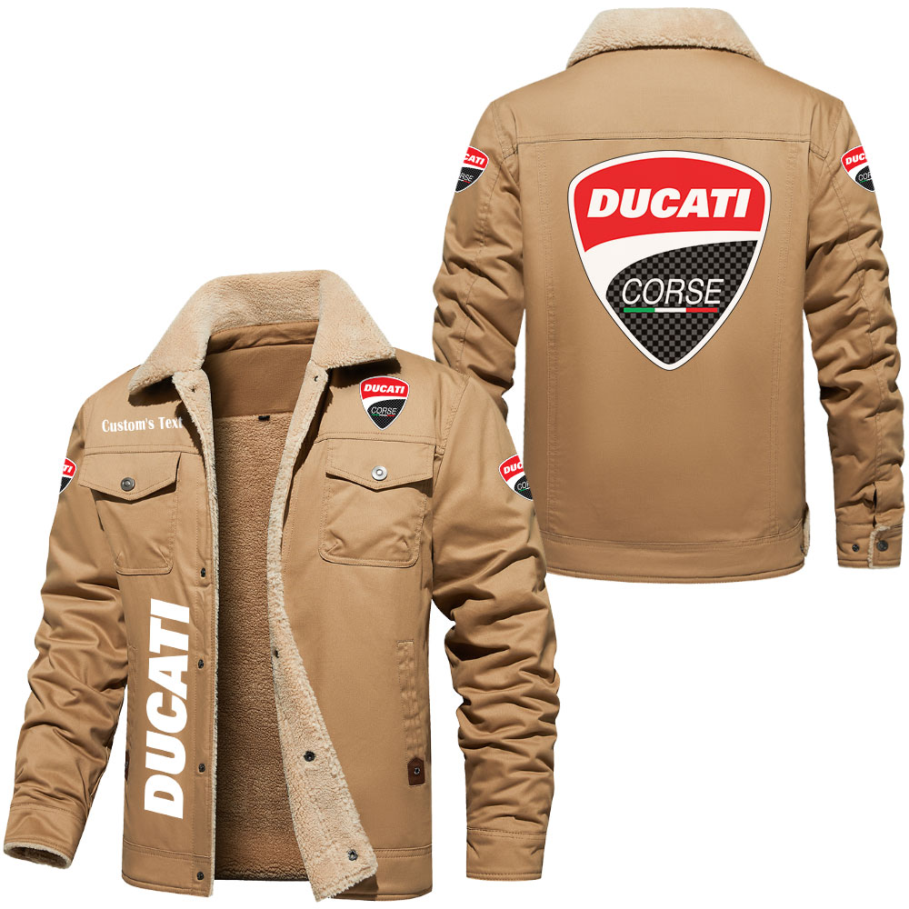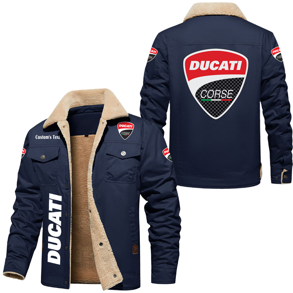 Ducati Logo Custom Text Cargo Fleece Lined Cotton Jacket